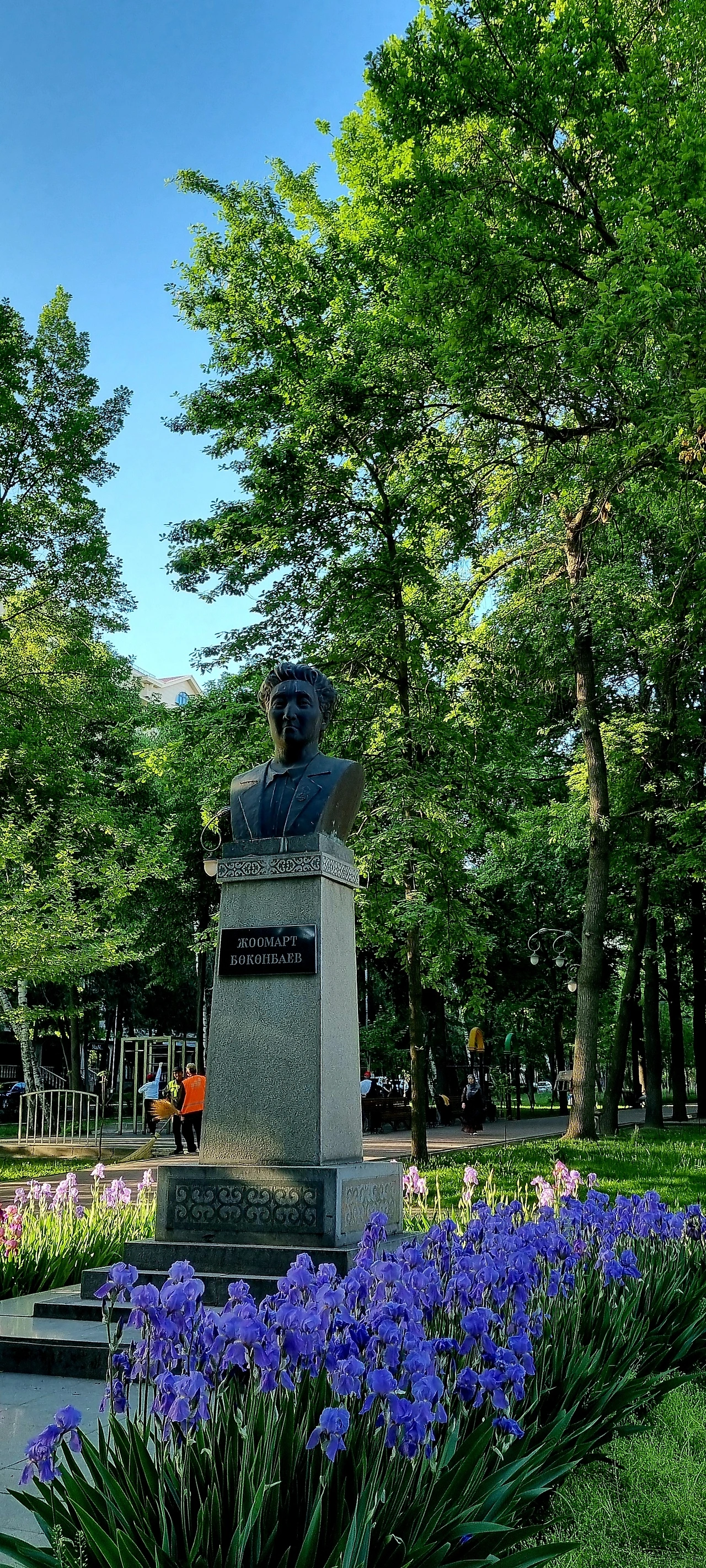 이 공원에는 산책길을 따라 많은 동상이 건립되어 있다. 에르킨딕 공원에서 가장 큰 동상은 비슈케크역 앞에 있는 붉은 군대의 영웅인 프룬제(Mikhail Vasilievich Frunze, 1885-1925) 장군의 기마상이지만, 가장 인기있는 동상은 시인 주마르트 보콘바예브(Joomart Bokonbayev, 1910-1944)의 동상이다. 이 곳에는 다른 동상 주위에는 없는 꽃밭이 조성되어 있고, 가끔씩은 누가 갖다 두었는지 꽃다발도 심심찮게 발견된다. 이 나라 사람들의 예술에 대한 열정을 엿볼 수 있는 단면이다. 마치 파리의 유명한 공동묘지 뻬레 라쉐즈(Pѐre Lachaise)에 묻힌 수많은 유명인사들 중 유독 쇼팽(Frédéric François Chopin, 1810-1849)의 묘역에 별스레 참배객들이 많고 꽃다발이 넘치는 것처럼 키르기스인들도 프랑스 사람 못지않게 예술인에 대한 존경심이 대단한 것 같다.