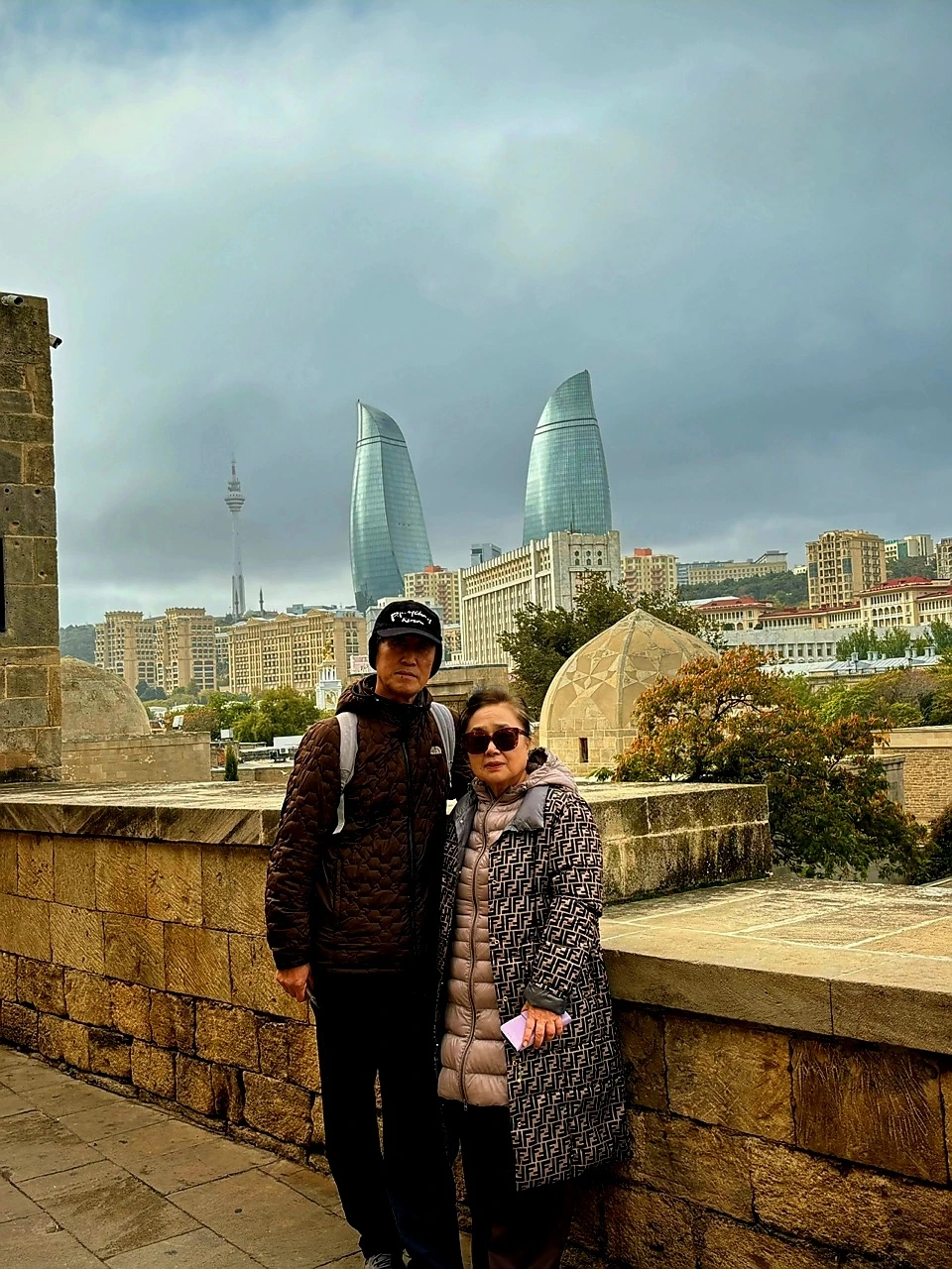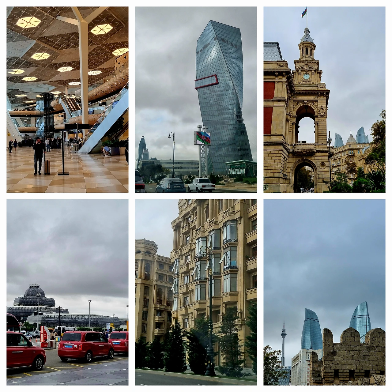 셋이 나란히 앉아서 2시간을 비행했다. 차가운 식사지만 우즈벡항공에서 샌드위치와 음료수를 마련해 주어서 아침식사로 요기할 수 있었다. 식사를 나눠주는 스튜어디스가 차라리 우락부락하게 생긴 인상의 동양인 여성이어서 의아했다. 서쪽으로 2시간을 비행했지만 또 다시 1시간 시차가 있어서 아제르바이잔의 바쿠에 착륙하니 아침 08시 35분. 아침 안개가 공항 주변에 가득찬 잔뜩 흐린 날씨다. 경인이 한국에서 e-visa를 미리 신청해 놓았기에 입국에 전혀 지장이 없다. 헤이다르 알리예브(Heydar Aliyev) 바쿠국제공항은 유리벽 외관이 유선형으로 흘러내리는 현대식 건물이다. 아침이라서인지 공항은 차라리 한산했다. 환전을 위해 기웃거리다 보니 은행마다 환율이 제법 차이가 난다. 살림꾼이 다 된 경인이 요리저리 비교하여 환율이 가장 높은 환전소로 가서 줄서서 우선 200불을 환전한 후 코카서스 지역에서 사용하는 호출앱 볼트(Volt)로 택시를 호출했다. 공항 뿐 아니라 공항 접속도로도 중앙아시아 수준이 아니다. 선진국에 온 느낌이 확 든다. 이건 시작에 불과했다. 시내로 점점 가까워지면서 도시고속도로 연도에 서있는 늘씬한 빌딩들의 위용이 한국의 건물들을 능가한다. 높이도 그러려니와 건물 디자인이 한국에서 보는 단순뭉툭한 건물이 아니다. 아파트는 서구 유럽식 건물처럼 고전적이고, 고층건물은 배배 꼬여 올라가는 전위적(前衛的)인 모습이 초현대적이다. 우리나라에서 찾아보기 힘든 미래도시의 모습을 바라보는 것 같다. 역시 산유국 oil money의 위용이 엿보인다. 촌놈 서울 구경 온 듯 택시 앞창 너머로 현대식 고층건물군을 올려다보며 동영상을 찍고, 시내를 지나쳐 언덕 위에 있는 우리 숙소로 향했다.