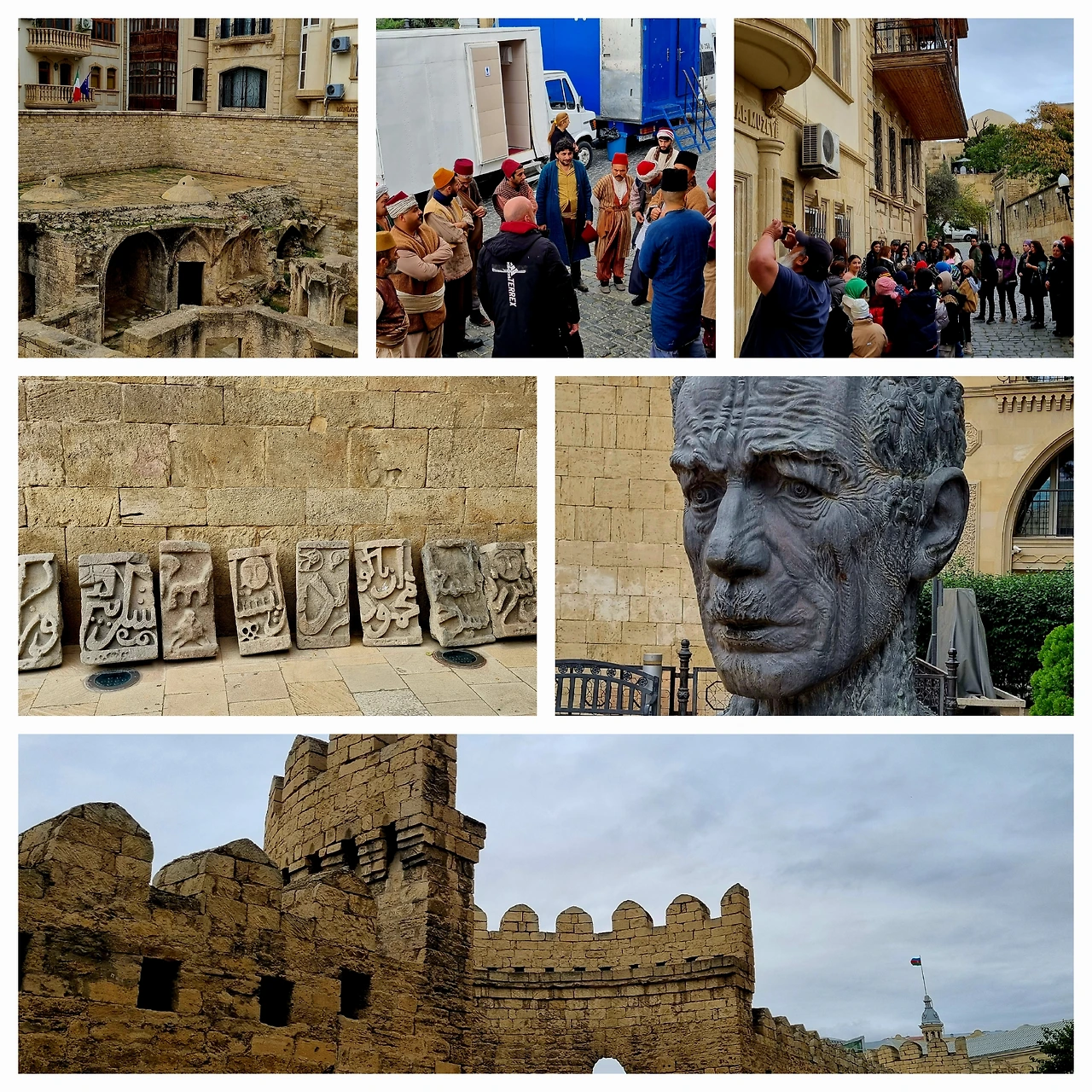구 시가지 관광의 핵심은 시르반샤(Shirvanshahs) 궁전이다. 시르반 왕조의 지배자(Shah)란 의미다. 시르반 왕조(861-1538)는 861년 바그다드의 아바스 왕조로부터 독립한 이래 1538년 이란의 사파비드왕조에게 멸망될 때까지 카스피해 서쪽 해안 대코카서스산맥과 소코카서스산맥 사이 평원에서 700여년 동안 번성했던 왕조다. 코카서스 산맥이 자연 방벽이 되고, 약소국의 굴종외교를 적극 활용한 덕분에, 시르반 왕조는 유라시아를 휩쓸었던 징기스칸의 몽골과 티무르 제국의 침공을 피할 수 있었다. 재미있는 일화가 전해 온다. 1394년 티무르가 코카서스에 도달하였을 때 당시 시르반 왕 이브라힘 1세(재위: 1382-1417)는 무조건 항복을 선언하고 노예 8명을 티무르대제에게 바쳤다. 티무르가 “왜 겨우 8명이냐?”라고 호통치자, 이브라힘 1세가 즉석에서 “9번째 노예는 바로 접니다”라고 재치있게 답변하여 티무르의 폭소를 자아냈고, 그 덕에 나라를 구할 수 있었다고 한다. 시르반 왕조는 당초 내륙도시인 사마키(Shamakhy)에 정도(定都)했었으나 15세기 지진으로 수도가 파괴되자 현재의 바쿠로 수도를 이전하고 축성(築城)하였다. 이체리쉐헤르(Icherisheher)라고 불리는 구시가지는 바다를 내려다보는 구릉을 따라 성벽으로 둘러쌓인 21.5ha (약 65,000평)의 공간으로 여기에 왕궁, 모스크, 영묘는 물론 시장, 목욕탕, 대상(隊商, 카라반)들의 숙소와 일반인들의 주거지까지 빼곡하게 들어찬 밀집공간이다. 이 성곽도시는 역사·문화·예술적 가치가 인정되어 2000년 도시 전체가 UNESCO의 문화유산으로 등재된 곳이다.