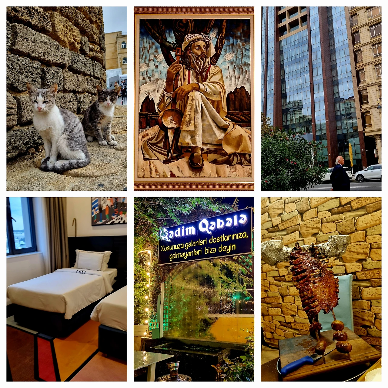 미술관을 나오니 벌써 늦은 오후다. 택시를 타고 Mercure호텔로 돌아와서 14층에 있는 주니어 스위트룸을 배정 받았다. 호텔방의 카페트도, 벽에 걸린 그림도 모디리아니의 추상화를 연상시키는 간명한 선과 원색으로 구성되어 있어서 화려한 느낌이 가득하다. 창문 밖으론 바쿠시내가 내려다보이는 전망 좋은 방이다. 그러나 이 멋진 방을 즐길 틈도 없다. 아제르바이잔의 양고기 요리가 세계 제일이라고 소개된 관광책자를 읽고, 다시 택시를 불러서 추천된 식당을 찾아 나섰다. 비가 내리기 시작했다. 이미 어둠이 도시를 뒤덮었다. 퇴근길 교통에 막혀 생각보다 시간이 무척 소요되었다. Qadim Qabala 식당은 시내를 관통하여 공항 방면으로 나가는 중간 지점의 해변가 매립지에 있었다. 이제 빗줄기가 제법 굵어졌다. 우중이라선지 식당은 차라리 한적했다. 주문하고 30여분 기다리자 과연 먹음직스럽게 잘 구운 양갈비를 통째로 들고 왔다. 나무 십자가처럼 생긴 거치대에 양갈비와 큼지막한 감자 몇알이 주렁주렁 꿰어져 있는 모습이 수금(手琴)을 연상시켰다. 사진을 찍고 나니, 그 자리에서 양갈비와 감자를 해체하여 접시 위에 쌓아 준다. 요즘 젊은이들이 좋아하는 식감인 ‘겉바속촉(겉은 바삭, 속은 촉촉)’한 바비큐다. 세상에서 제일 맛있는 오이로 소문난 딱딱 부러지는 자그만 아제르바이잔 오이를 샐러드로 시켜서 함께 먹었다. 자칭 세계 제일이라는 두가지 음식이 나열된 식탁이니 먹는 음식, 보는 음식으로 나무랄데 없는 식당이다. 빗길 10km를 달려와서 먹은 보람이 있었다. 손님이 없어서 난방을 하지 않아선지 방은 약간 서늘했지만, 천천히 식사를 즐겼다.