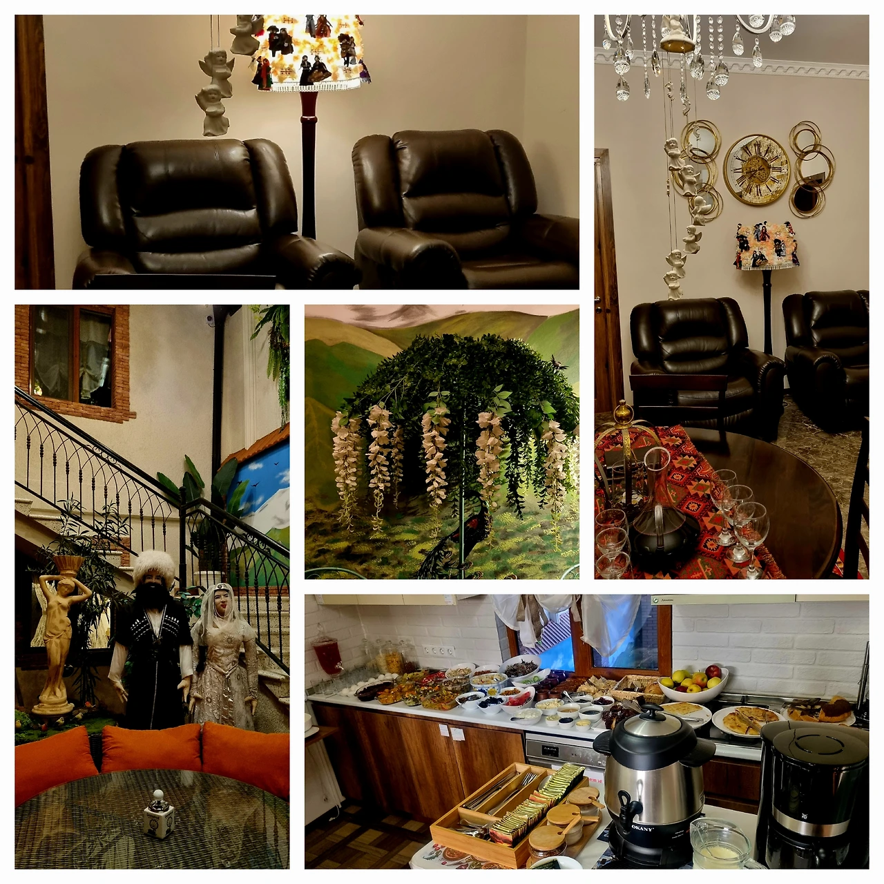 조그만 성읍마을을 벗어나자 금방 고속도로로 진입한다. 편도 2차선 고속도로는 예상보다 훌륭했다. 마지막 저녁놀이 수채화 물감처럼 붉은 띠를 그리고 있다가 점점 희미해지더니, 이윽고 온 천지에 어둠이 깔리기 시작한다. 늙어서 바라보는 석양은 스스로를 보는 듯 서글프다. 그리고 나지막이 기원해 본다. 우리네 남은 인생도 저 노을처럼 붉게붉게 타오를 수 있길... 서쪽 산들의 윤곽이 마지막 석양햇살의 뒷조명을 받아서 더욱 또렷해지나 싶더니, 이젠 완전한 밤이다. 하루 중 이 때쯤이 가장 어둡다. 깜깜해 진 벌판을 약 1시간 질주하여 고리(Gori)로 들어갔다. 고리는 조지아 국토의 정중앙에 위치한 도시이자, 독재자 스탈린의 고향으로 유명하다. 경인이 예약한 호텔은 자그마한 부띠끄호텔이란다. 그런데 이용객 평이 더 이상 좋을 수 없을 만큼 칭찬 일색이라서 어떤지 궁굼해서 예약했다고 한다. 인구 5만명 소도시의 밤은 차라리 적막하다. 내비게이션이 가리키는대로 컴컴한 시내를 천천히 주행하여 주택가 한복판에 있음직한 2층짜리 호텔로 찾아갔다. 후덕하게 생긴 웬 중년여성이 집밖에서 기다리고 있다가 주차안내를 해주고는 자신이 엠마라고 소개한다. 집주인이다. 밤에 본 Hestia호텔 외관은 차라리 초라했다. 그러나 문을 열자 2층으로 가는 계단 아래에 화려한 인형들과 소품 장식들이 아름답게 배치되어 있다. 방이 5개밖에 없는 가정식 호텔이지만 거실에는 앤티크 가구와 에디슨 확성기같이 생긴 턴테이블도 있다. 엠마가 LP판을 얹어서 노래를 틀어준다. 처음 듣는 노래지만 LP판 특유의 부드러운 음정, 감미로운 음악이 거실에 울려 퍼졌다. 탁자 위에는 집에서 담근 하우스 와인 붉은 포도주가 디칸터에 담겨져 있다. 맘껏 드시란다. 역시 와인의 나라 조지아답다. 방에도 싱글베드 3개가 단아하게 놓여있고 아기자기한 소품들로 앙징맞게 장식되어 있다.