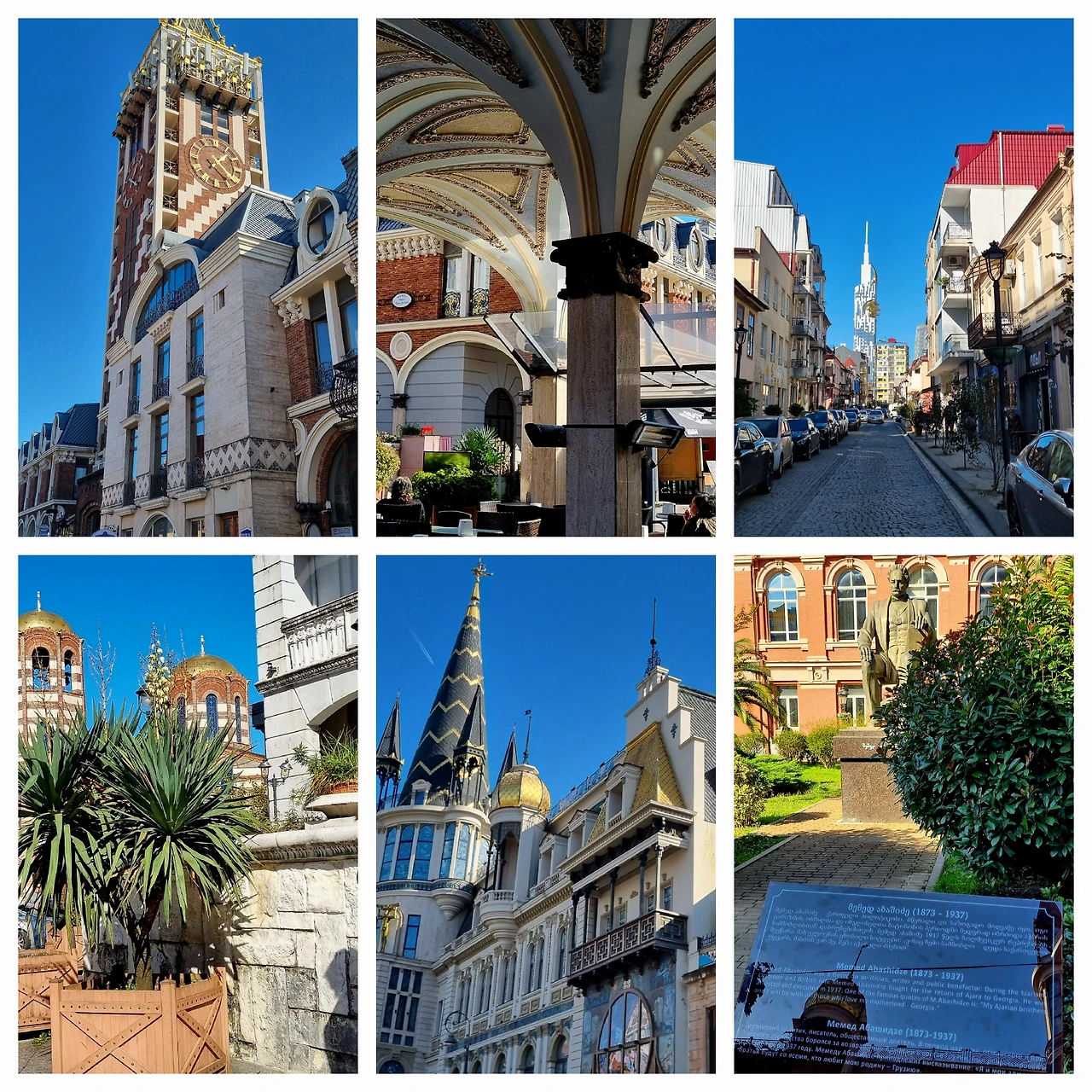 연도의 다양한 건물들을 기웃거리며 걷다보니 잘 정돈된 정원 한가운데, 카이저 수염에 책을 들고 앉아있는 한 점잖은 신사의 동상이 있다. 19세기말에서 20세기 초까지 강대국의 압력에 맞서서 투옥과 시베리아 유배를 거듭하며, 바투미를 포함한 아자라(Adjara) 지역을 조지아공화국의 일부로 만드는 독립운동에 헌신했던 애국자이자 작가인 메메드 아바시데즈(Memed Abashidez, 1873-1937)의 동상이다. 그는 현판에 설명된 문구처럼 “아자라의 형제들과 나는 우리의 조국 조지아를 사랑하는 모든 사람들과 함께할 것이다”라고 선언하였건만, 결국은 한때 바투미에서 함께 독립운동을 하던 동지였던 스탈린에 의해 1937년 ‘대숙청’ 기간에 사살되었다. 그는 아직도 조지아의 영웅으로 존경받고 있지만, 그의 손자인 아슬란 아바시드제(Aslan Abashidze)는 1991년 소비에트 블록 붕괴 이후 할아버지의 후광을 업고 ‘아자라자치공화국’의 수장이 되었으나, 폭압적인 독재정치가로 군림하다가 2004년 ‘장미혁명’ 때 축출되었다고 한다. 못된 손자는 모스크바로 도망쳐서 아직도 1급 수배자로 비겁하게 숨어 지내지만, 할아버지는 여전히 온화한 미소로 지나다니는 시민들과 관광객들을 맞고 있으니 여기서 다시 한 번 역사의 아이러니를 발견한다.
