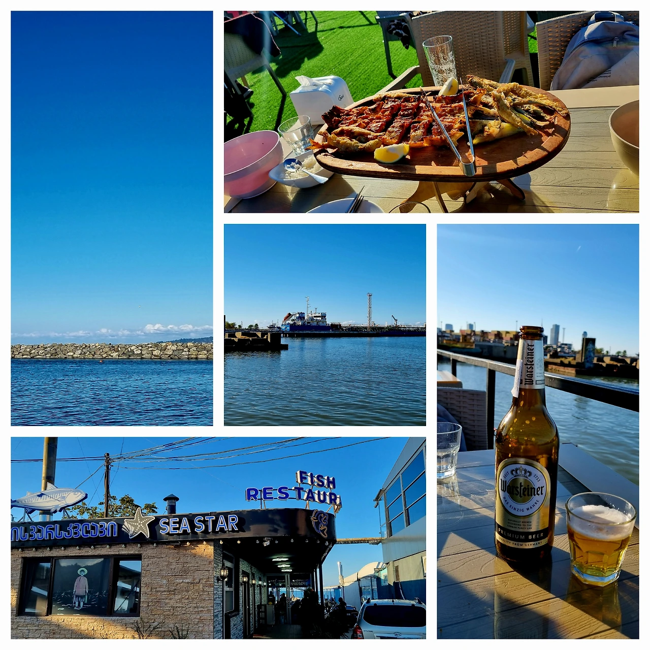이제 점심시간이다. 내륙국에서 10개월을 지내다 왔으니 항구도시에서는 생선요리를 먹어야겠다. 여러 관광안내 책자에서 소개해 준대로 차를 몰고 도시 외곽의 수산시장으로 갔다. 주차공간을 찾기 힘들어서 골목길 안으로 들어서자 웬 할머니가 손짓까지 하면서 친절하게 저 쪽에 주차하라고 공터 한 켠을 가르킨다. 참 상냥하시다 생각했는데 밥 먹고 나중에 나올 때 보니 어김없이 주차료라면서 약간의 돈을 징수해 간다. 수산시장에서 생선을 사서 식당에 요리를 부탁하는 시스템이라고 들었기에 수산시장으로 걸어가노라니 저마다 자기가 안내해 주겠다고 나서는 호객질이 장난이 아니다. 결국 영어도 곧 잘하는 웬 잘 생긴 젊은이가 나타나서 그럴 듯해 보이는 식당을 가리키며 저 곳이 자기네 식당이니 자기가 잘 안내해 주겠단다. 젊은이를 따라가노라니 우린 언질도 주지 않았건만 다른 작자가 나타나서 자기가 찜한 고객을 왜 낚아채 가느냐고 자기들끼리 언성을 높이며 말싸움을 한다. 그야말로 아수라장이다. 청년을 따라 들어간 수산시장은 불과 열 댓개 남짓의 가게에, 생선도 별로 많지 않은 초라한 시장이다. 그리곤 자기 이모라면서 웬 생선가판대로 우릴 데리고 간다. 그런지 어쩐지, 그냥 자그만 철갑상어 1마리와 꽁치 등 잡어 몇 마리를 바구니에 담아서 지불했다. 기억은 나지 않지만 제법 비싸게 지불했다. 상술인지 서비스라며 생선 알 4개를 담아준다. 청년은 생선 담은 비닐봉지를 들고 앞장서서 걸어간다. 그리곤 골목길에서 마주친 어느 중년 남성에게 우리를 인계한다. 그리고 우린 엉뚱한 식당으로 안내되었다. 그 미남 청년은 어디로 갔는지 보이지 않는다. 결국 소위 말하는 ‘삐끼’였다. 그리고 우린 그 잘생긴 청년에게 낚인 ‘생선’인 셈이다. 어쨌건 모든 식당들이 바다 속으로 데크가 설치되어 있었다. 날씨가 제법 쌀쌀했지만 바다로 돌출한 야외 데크에 앉아서 독일제 바스타이너(Wasteiner) 맥주 1병을 나눠 마시며 요리가 나오길 기다렸다. 바스타이너는 독일 브레멘에서 유학한 후배가 자기네 동네 것인데 세계 최고의 맥주라고 거품 물고 칭찬하던 바로 그 맥주다. 몸 컨디션도 안좋은 상태에서 서늘한 바닷가 날씨에 차가운 맥주를 마시니 세계 최곤지 최전지 그저 차가운 느낌뿐이다. 게다가 한참을 기다려도 요리는 나오지 않는다. 1시간 반쯤 있다가 겨우 나온 요리는 우리 것이 아니다. 상어가 없다. 또 약 20여분을 기다려서야 요리가 나왔다. 튀김 반, 구이 반이다. 시장이 반찬이라선지 제법 맛있게 먹었다. 그러나 칼칼한 밥반찬과 더불어 먹는데 익숙한 한국인들에겐 밋밋한 빵과 겨우 1가지 소스에 찍어 먹는 뻑뻑한 생선요리가 뭔가 빠진 것 같이 아쉽기만 하다. 게다가 2시간가량 덜덜 떨며 기다리다가 먹었으니... 수요자보다 공급자가 많은 불완전경쟁 시장. 호객행위와 바가지가 횡행하는 난장판. 다시 오고 싶은 생각이 들지 않는 전혀 유쾌하지 않은 시장이다.