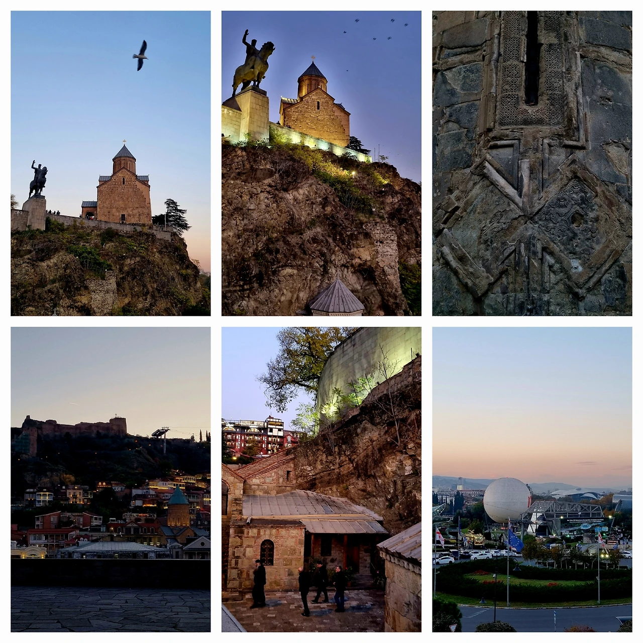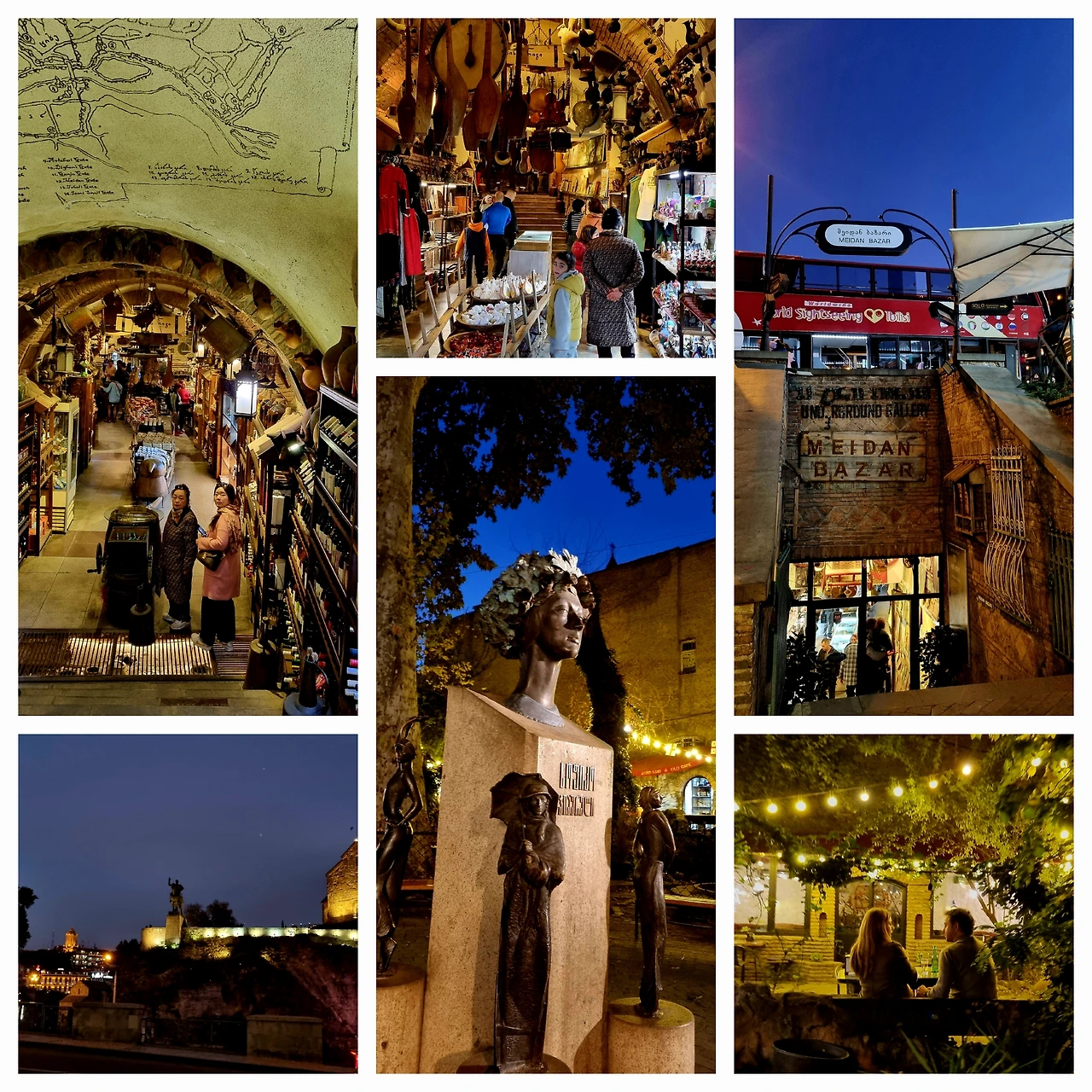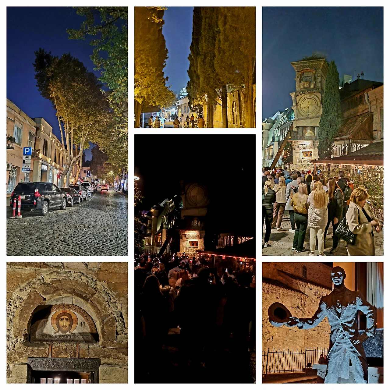 성에서 내려와서 다시 ‘메테키 다리’와 ‘메이단 바자’를 지나서 오던 방향을 그대로 되짚어 구도심으로 향했다. 이제 석양도 사라지고 달도 뜨기 전의 검푸른 하늘 아래로 주변 산들의 윤곽이 뚜렷하게 드러나기 시작한다. 하늘빛이 가장 깊고 검푸르게 찍힌다는 골든 아워(golden hour)다, 나리칼라성의 네모반듯한 윤곽이 앞산 능선의 부드러운 곡선에 얹혀서 기묘한 대조를 이루고 있다. 구도심으로 가는 길은 낮에 지나올 때와는 확연히 다른 분위기다. 언제 이렇게 은은한 조명 속에 우아한 레스토랑, 카페가 있었나 싶다. 바닥도 자갈로 포장한 길이라서 고전적 분위기가 훨씬 살아난다. 가로공원 길, 마름모꼴 좌대 위에 목이 긴 여인의 흉상이 서있다. 간접 조명을 받아 납량(納涼) 특집의 여자귀신처럼 음산하다. 가까이 가서 살펴보니 소비에트 연방 시절 사회주의권에서 유명했던 여배우 Sofiko Chiaureli(1937-2008)의 조각상이었다. 머리에 화관을 쓴, 이목구비가 수려한 여인은 오늘도 지그시 눈을 감은 채, 생전에 출연했던 영화의 대표적인 장면을 표현한 조각상에 둘러싸여, 그녀를 기억하는 올드팬들의 사랑을 받고 있었다. 새삼 조지아의 예술적 감각과 수준 높은 조각작품에 감탄을 금치 못하겠다. 고대부터 그리스-로마와 접촉했던 그 문화적 유전자가 아직도 사회 곳곳에 남아 있는 것 같단 생각을 해보았다.