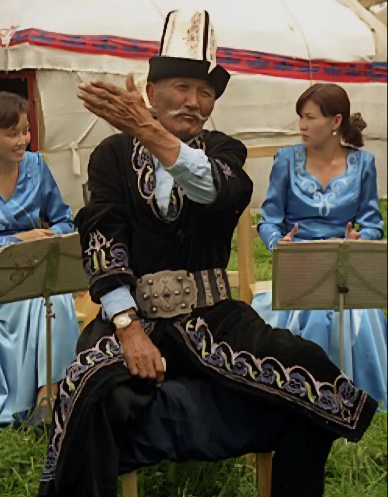 세계에서 가장 긴 서사시인 마나스는 8세기 실존 인물로 추정/주장되는 민족영웅 마나스(Manas)와 그의 아들 세메테이(Semetei), 손자 세이텍(Seitek)에 이르는 3대 전사들의 활약상을 묘사하고 있는 영웅전이다. 마나스 서사시는 전체 길이가 50만줄을 넘을 정도로 방대한 이야기로써 19세기에 채록되어 문자화되기 전까지 주로 구전되어 전승되어 온 서사시다. 마나스 서사시를 외워서 재현하는 사람들을 ‘마나스치(manaschy)’라고 하며, 이들은 특별한 재능과 영적으로 선택 받은 사람으로 간주되어 키르기즈 사회에서 높은 존경을 받는 사람들이다. 마나스치 중에는 5일에 걸쳐 111시간동안 끊임없이 전체 서사시를 암송하여 공연한 기록을 세운 분(Doolot Sydykov)도 있다. 마나스치들 마다 기억이 다르고, 때론 신접(神接)한 상태에서 무의식 속에 낭송되다보니 65개 이상의 다른 버전이 혼재하고 그 내용이 서로 상충되기도 한다. 그러나 모든 마나스 서사시는 3부로 구성되어 있다. 제1부는 마나스, 제2부는 그의 아들인 세메테이, 그리고 제3부는 마나스의 손자인 세이텍에 관한 설화로 대략 다음과 같은 스토리 구조를 갖고 있다.