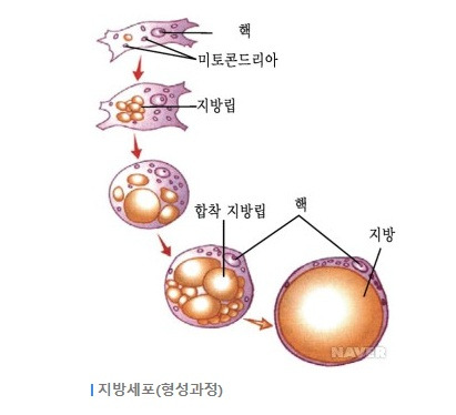 지방을 흡수저장하고 필요할 때 에너지로 쓸 수 있게 내보내주는 역할을 하는 것은 지방세포입니다. 그런데 지방공급이 과잉되어 지방세포 하나하나가 비대해지거나 그 수가 늘어나면 비만이 됩니다.