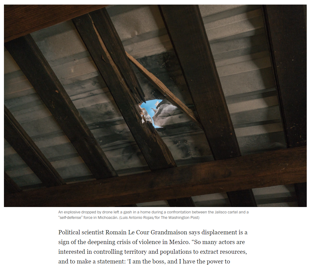 두 번째 레퍼런스는 워싱턴포스트의 The war next door: Confilct in Mexico is displacing thousands 입니다. 이 기사에서 사진의 배치를 따왔습니다.