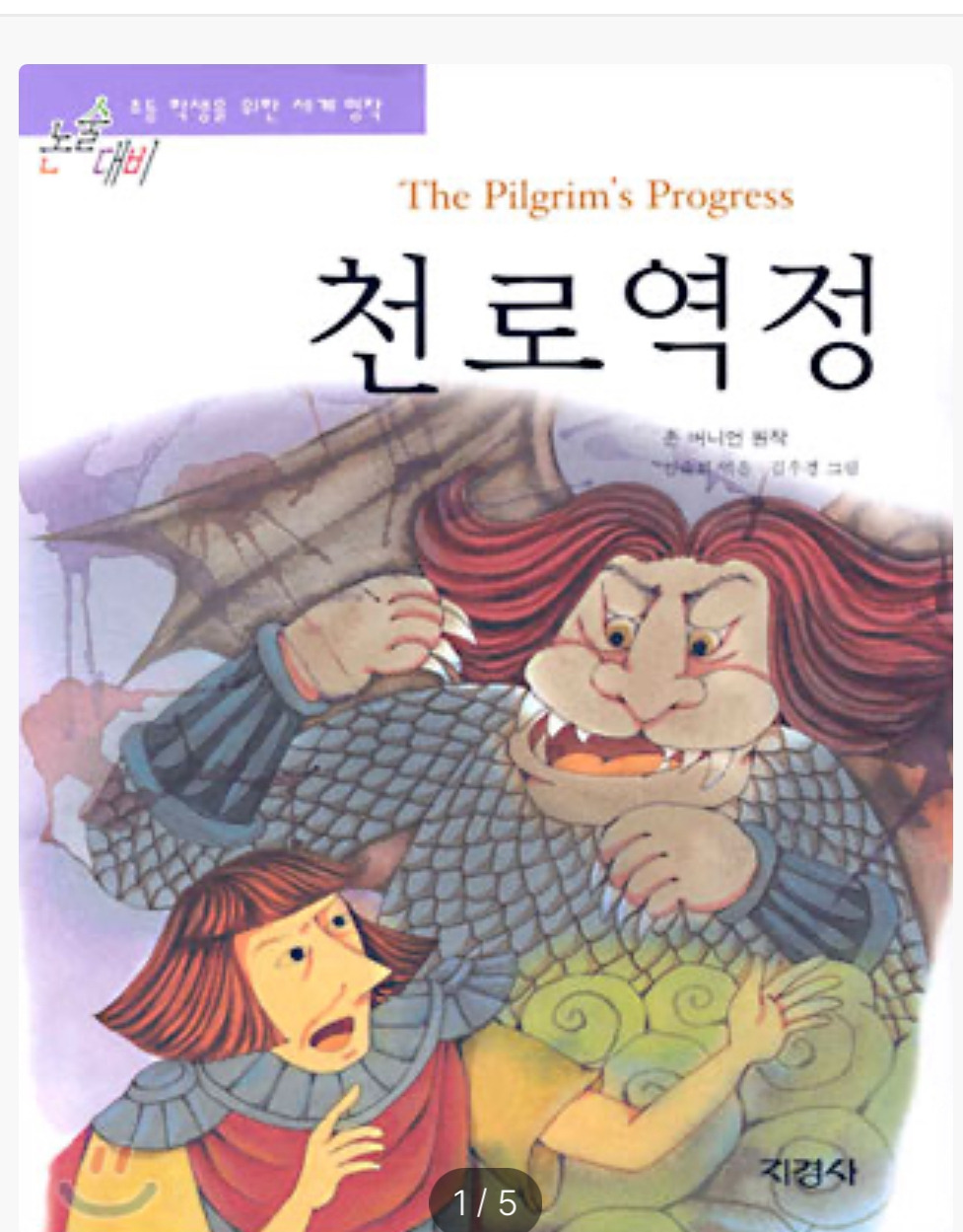 The Pillgrim’s progress: 천국으로 가는 순례자의 여정을 의미 (영어 표현이 더 어떤 책인지 이해하기 쉽다.)