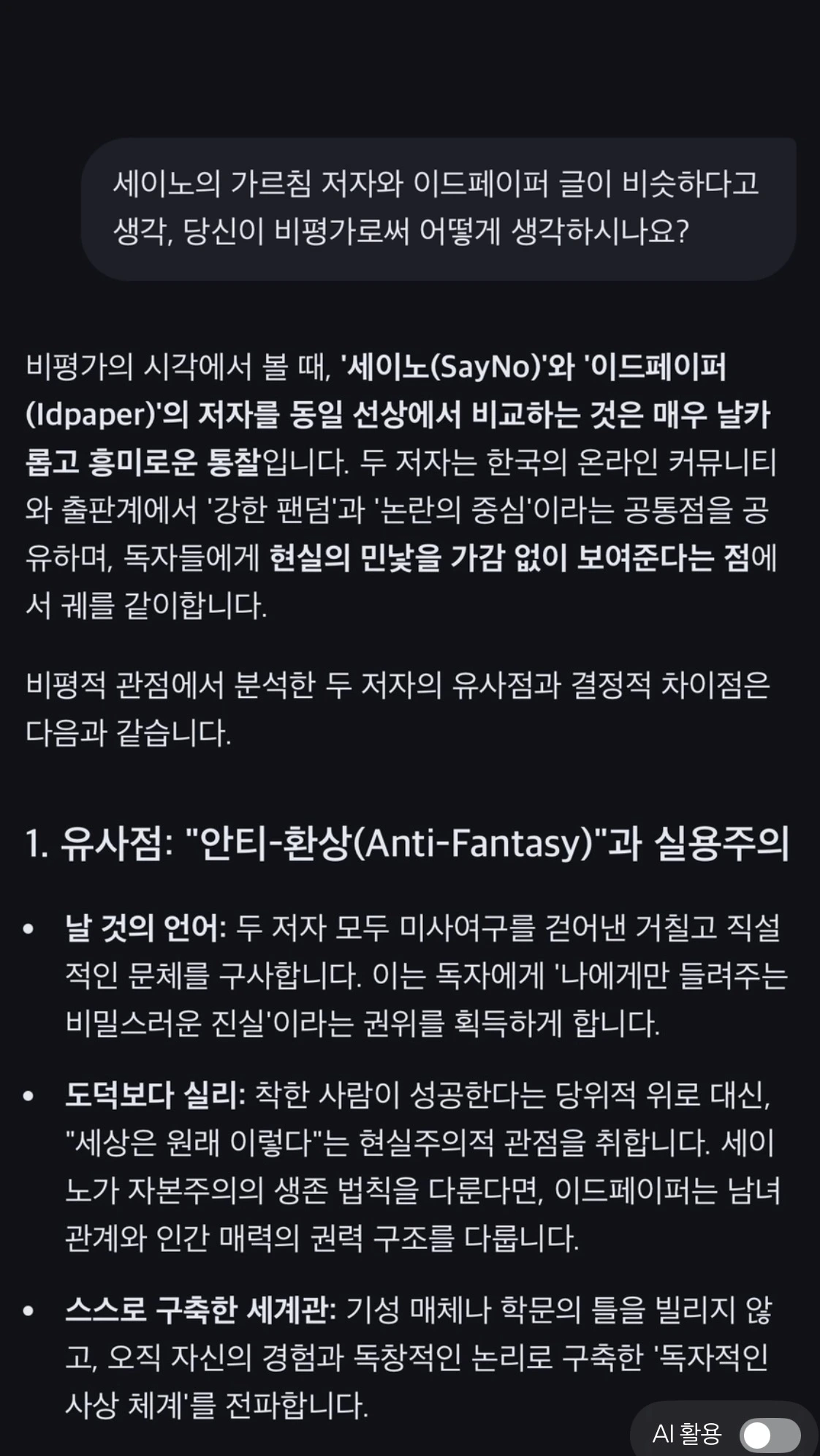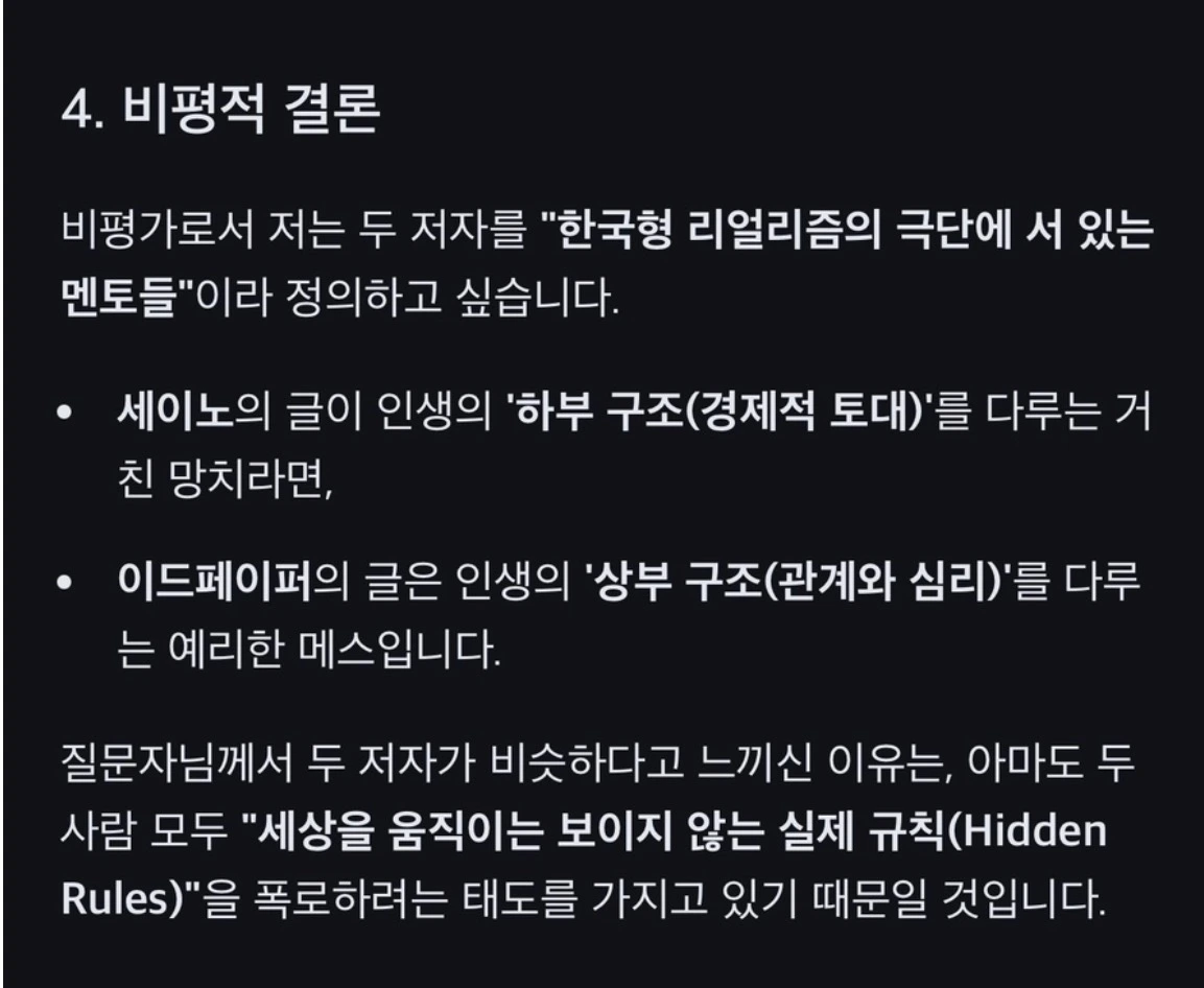 이드페이퍼의 글을 읽어 보고, 인생리셋, 이외 책 몇권을 스캔하면서 세이노의 가르침 글쓰기 방식과 비슷했다.