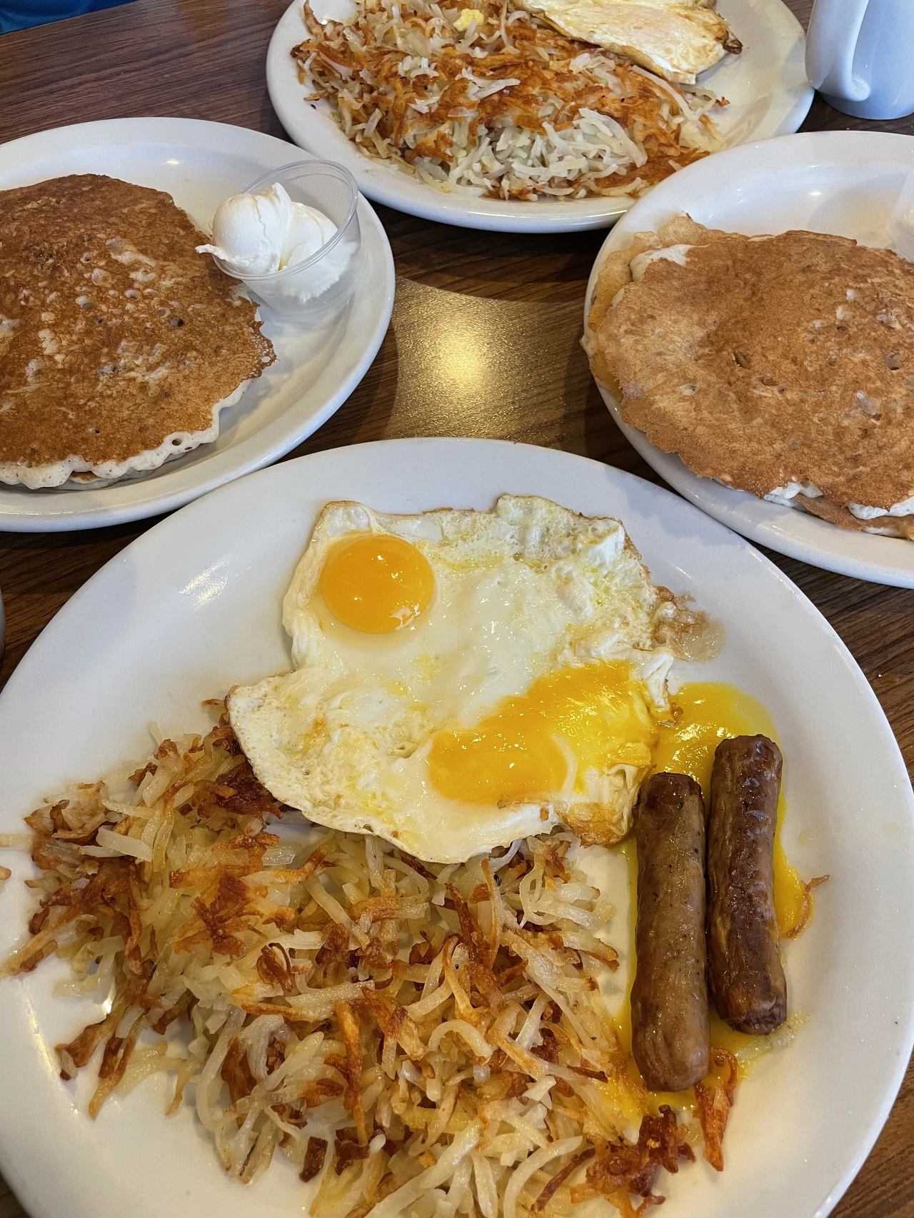 친구랑 내가 휴스턴에서 하이킹을 가면 꼭 이후에는 Denny’s라는 레스토랑에 가곤 했다. Denny’s는 팬케익, 프렌치토스트 등 미국식 아침식사를 하루종일 파는 체인 레스토랑이다. 우리는 항상 팬케익을 잔뜩 시켜 먹곤 했었는데, 등산 후 먹는 팬케익이라 칼로리 따위는 무시한 채 시럽을 콸콸 부어 먹곤 했다. (짱맛) 하이킹을 통해 땀을 흠뻑 흘리고 내려와서는 모건타운에 있는 브런치 레스토랑에 갔다. 아주 조그마한 레스토랑이었는데 여기서도 비슷하게 팬케익, 계란 등 미국식 아침 식사를 시켰다. 맛은 있었으나 Denny’s 만의 불량식품 같은 맛이 없어서 조금 아쉬웠다. 등산 후에는 시럽을 콸콸 부어먹어야 제맛…