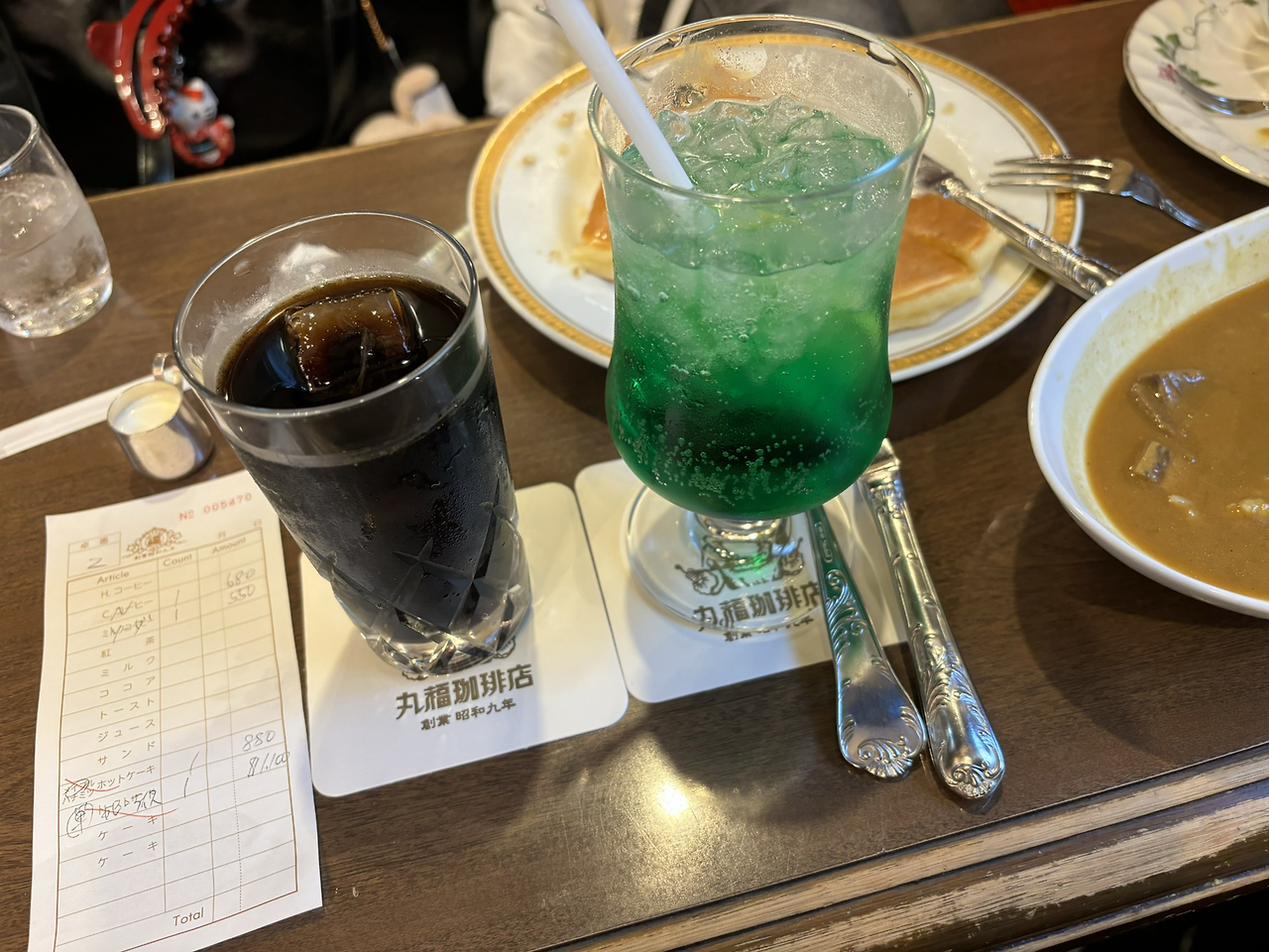 아이스커피 메론소다 팬케이크 샌드위치 등을 주문했고