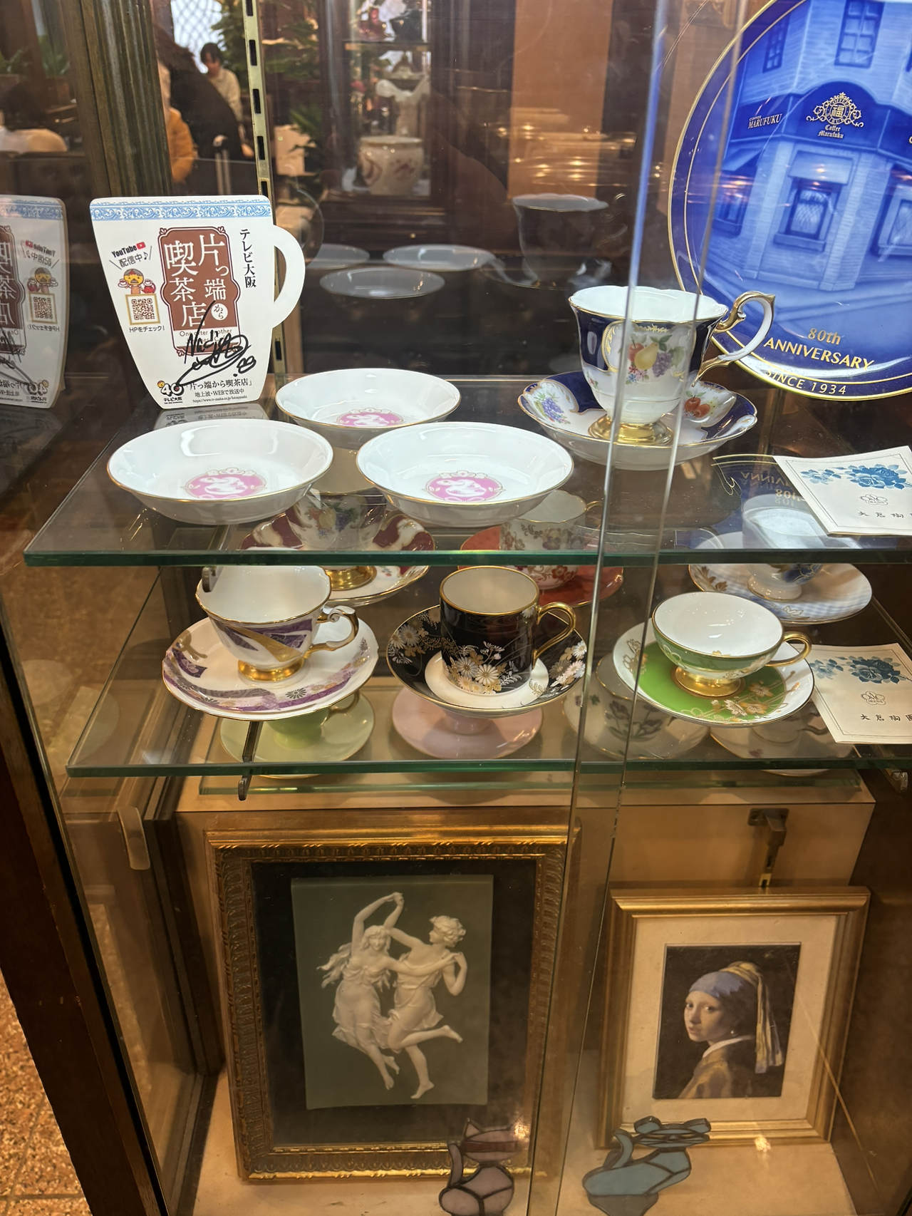 진열장에 장식해 놓은 엔틱 찻잔들