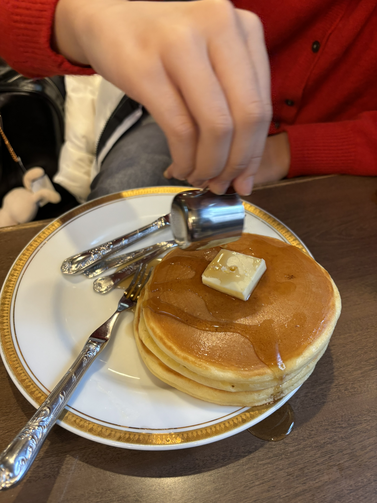 시럽을 듬뿍 뿌려 먹는 팬케이크, 햄치즈 샌드위치 그리고 메론소다