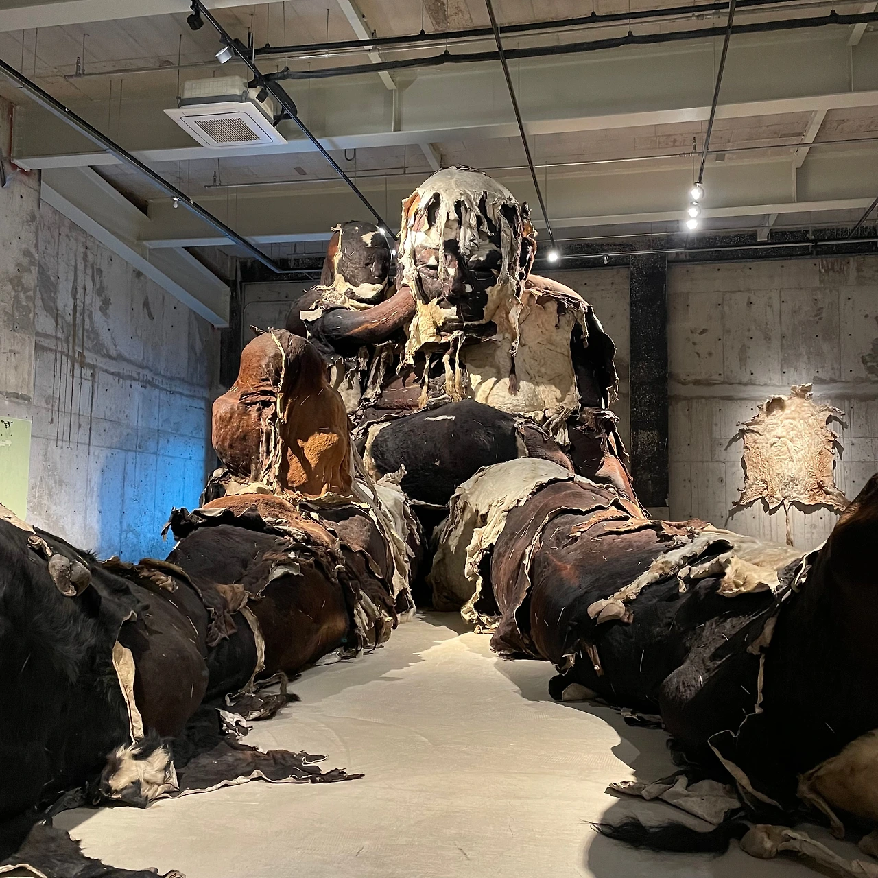 4층과 3층에는 거대한 작품들도 있었는데, 중국의 작가 장환이 소가죽으로 만든 작품은 거대한 트롤을 떠오르게 했습니다. 소의 살갗으로 만들어진 작품은 웅장했지만, 다른 동물의 생명으로 만들어진 거인에게 신비를 느낄 수 없었습니다. 영웅 서사에 지워진 죽음의 실체가 부각되는 것만 같았습니다. 히어로물이 부추기는 초인(superman)에 대한 동경이 실상 인간성을 말살하는 것이 아닐까 싶었습니다.