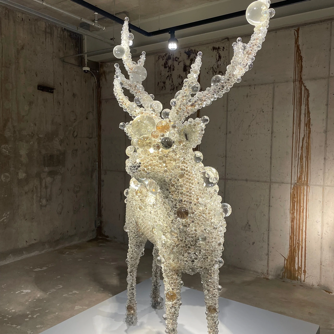1층에서는 코헤이 나와의 유리구슬로 된 사슴을 볼 수 있습니다. 자세히 보면 영롱한 크리스털 속에 사슴이 박제되어 있는 것을 볼 수 있는데, 픽셀로 이루어진 디지털기기를 통한 인간의 인지기능에 대해 말한다고 합니다. 우리가 보는 픽셀이 실제인지 묻는 것이겠죠?