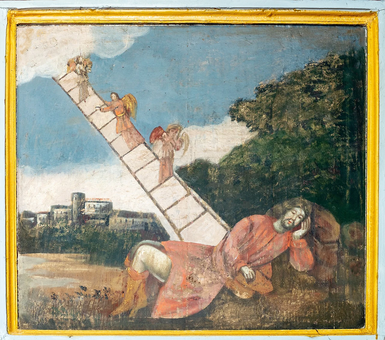 하늘과 땅을 잇는 사닥다리, 그 위로 오르내리는 천사들,그리고 그 사닥다리 위에서 말씀하시는 하나님.