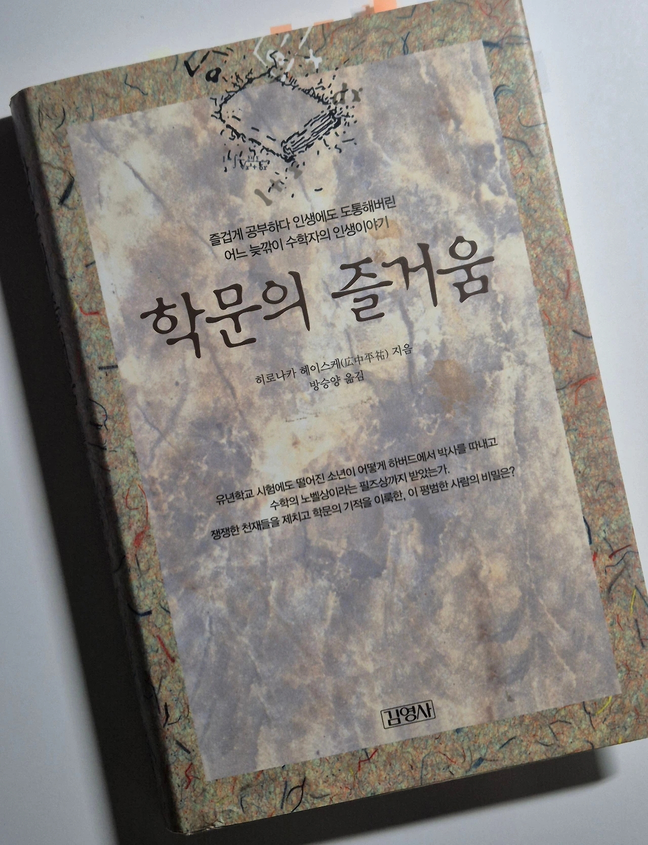 <학문의 즐거움>은 수학자 히로나카 헤이스케의 자서전이다. 그는 근면하고 독립적인 장사꾼인, 그렇지만 대학은 공부를 하지 않아도 합격할 수 있는 똑똑한 사람만이 가는 곳이다 라는 신념과 '먹고 사는 것'만큼 이 세상에서 소중하고 강한 것은 없다는 철학을 가진 아버지와 자유방임주의로 열 다섯명의 자녀를 키워낸 어머니의 사이에서 만주사변 시기에 4남으로 태어나고 자랐다. 그의 어머니는 자유방임주의자이기는 했지만(15명 키워내려면 어느 정도 그럴 수 밖에는 없었을 것 같다.) 나름대로의 기준은 있었다. 그의 어머니는 단지 아이들 하나하나를 정성스럽게 키우지만 않았을 뿐, 항상 아이들이 하고 싶어하는 것, 되고 싶다는 장래 희망에 대해서는 늘 찬성하며 아이들의 성장기에 점점 많아져가는 질문에는 대답할 지식이 없어도 '모르겠다'라는 말을 하거나 화를 내는 대신 '글쎄, 왜 그럴까? 그건 네가 커서 공부하면 알 수 있을 거야.' 라며 같이 생각해주셨다고 말한 것을 보면, 히로나카 헤이스케는 자유방임주의를 긍정적인 이미로 저술한 것 같다. 덕분에 그는 생각하는 기쁨을 일깨울 수 있게 되었다.