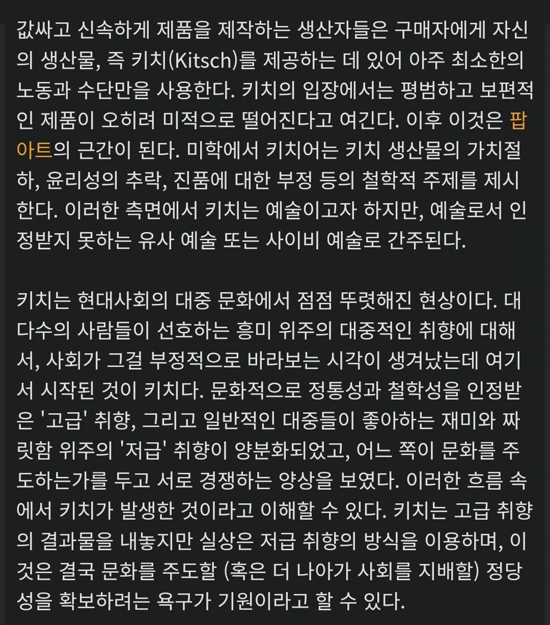 진짜처럼 그럴싸하게 포장된 가짜(키치)를 사람들은 소비하고 열광한다