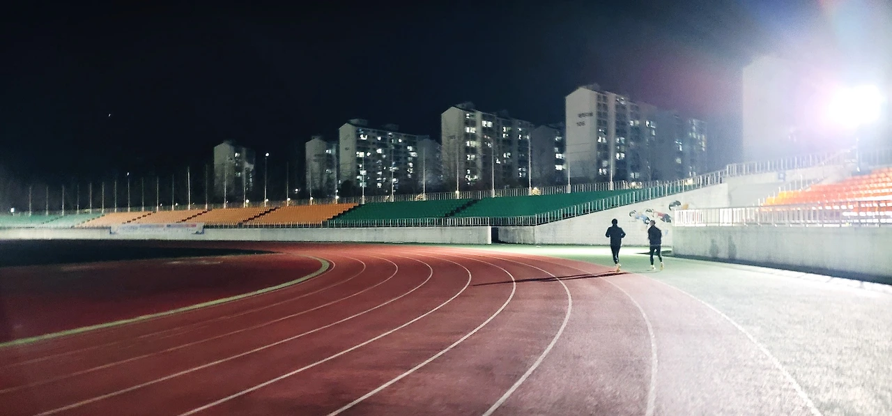 어제는 구례에서 광양까지 가서 달렸다. 3,000미터를 400미터당 92초 속도로 달리고, 휴식 주로 400미터를 120초에 달리는 것을 3회 반복했다.