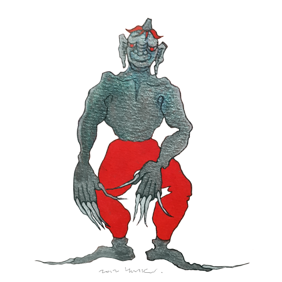 담벼락 너머를 살피던 선이는 공중에 양반다리를 하고 둥둥 떠 있는 기이한 존재와 마주쳤다. 그는 실오라기 하나 걸치지 않은 탄탄한 상체에 강렬한 붉은 바지 하나만을 걸친 채 지그시 눈을 감고 있었다.