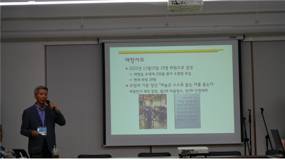 그래서 어떻게 우리 매항동을 발전시켜 볼까 하고 몇몇이 사람들이 모여서 논의를 하게 됐습니다.