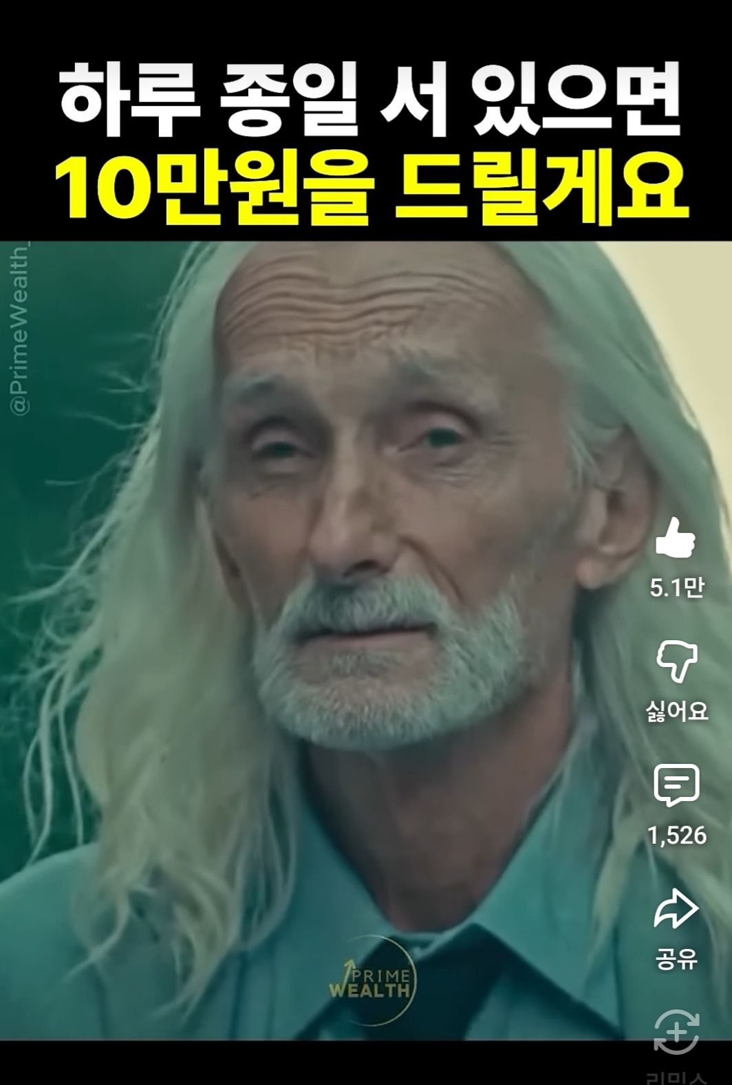 영상 제목은 "하루 종일 서 있으면 10만 원을 드릴게요" 이 영상이다.