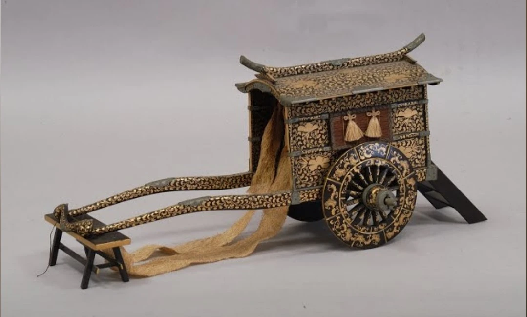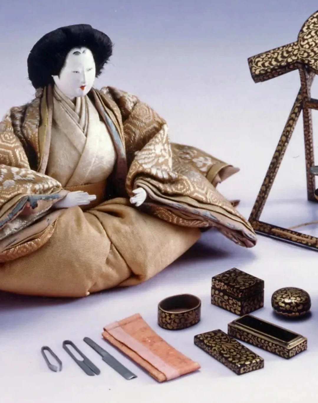이 정교한 인형용 소품들은 히나도구(雛道具)라 불립니다. 이것은 단순한 장난감 모형이 아니었습니다. 가문의 문장이 정교하게 새겨지고, 금가루가 고르게 뿌려진 최고급 옻칠 공예품이었습니다. 당대 최고의 장인이 아니고서는 감히 만들 수 없는 물건들이었죠.
