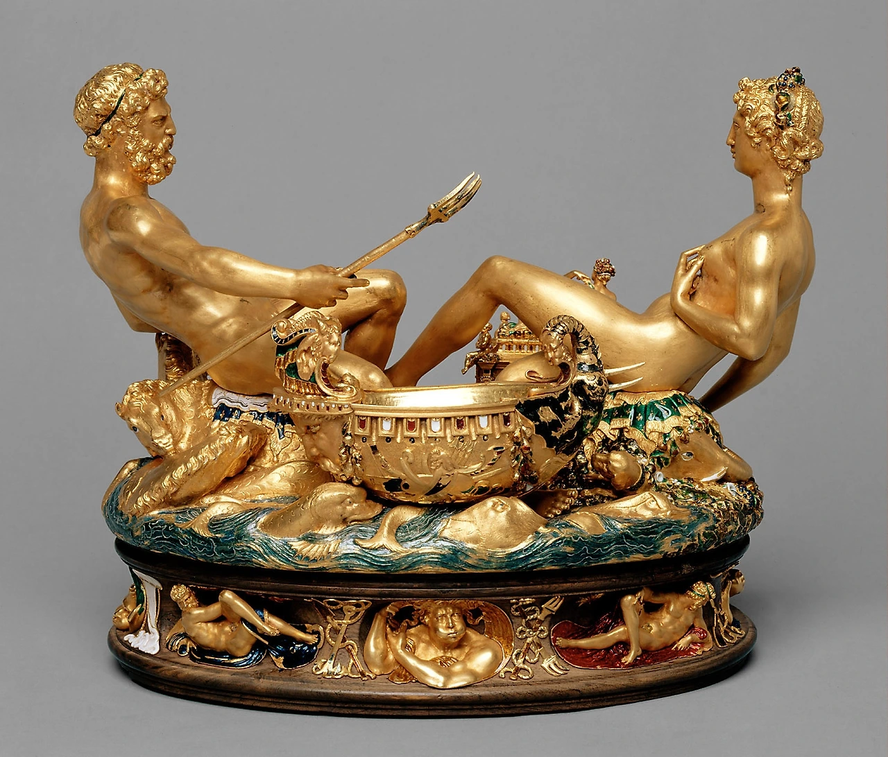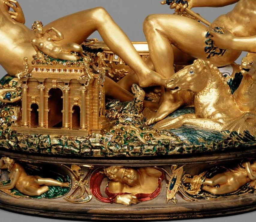 첼리니의 소금통은 후기 르네상스 매너리즘의 전형적인 특징을 가장 잘 보여주는 작품입니다.