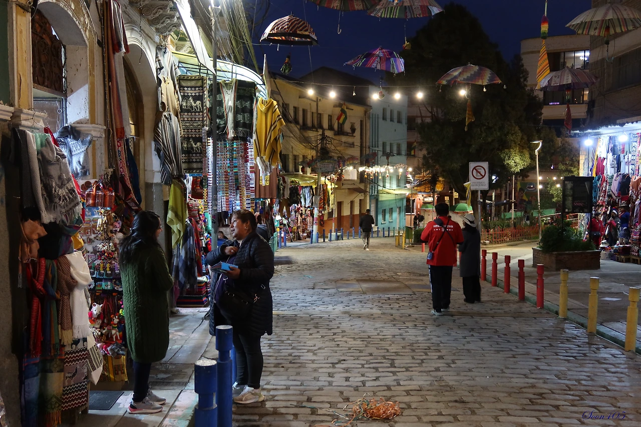 마녀시장은 중심 도로 좌우에 상가들이 늘어서 있고, 사이 골목에도 드문드문 가게가 있다. 골목 안에는 이들이 즐겨 마시는 코카차를 파는 카페도 있다. 거리는 조명과 장식물, 벽화들로 꾸며져 있는데 벽화에도 인디오 문화가 담겨있다. 전통 문양의 옷과 판초, 숄, 모자, 가방이 쌓인 가게를 잉카의 여인이 지키고 앉아있는 모습도 심심찮게 눈에 띈다. 서늘한 밤공기를 느끼며 반질거리는 돌길을 걷는 것도 운치 있는 일이었다.