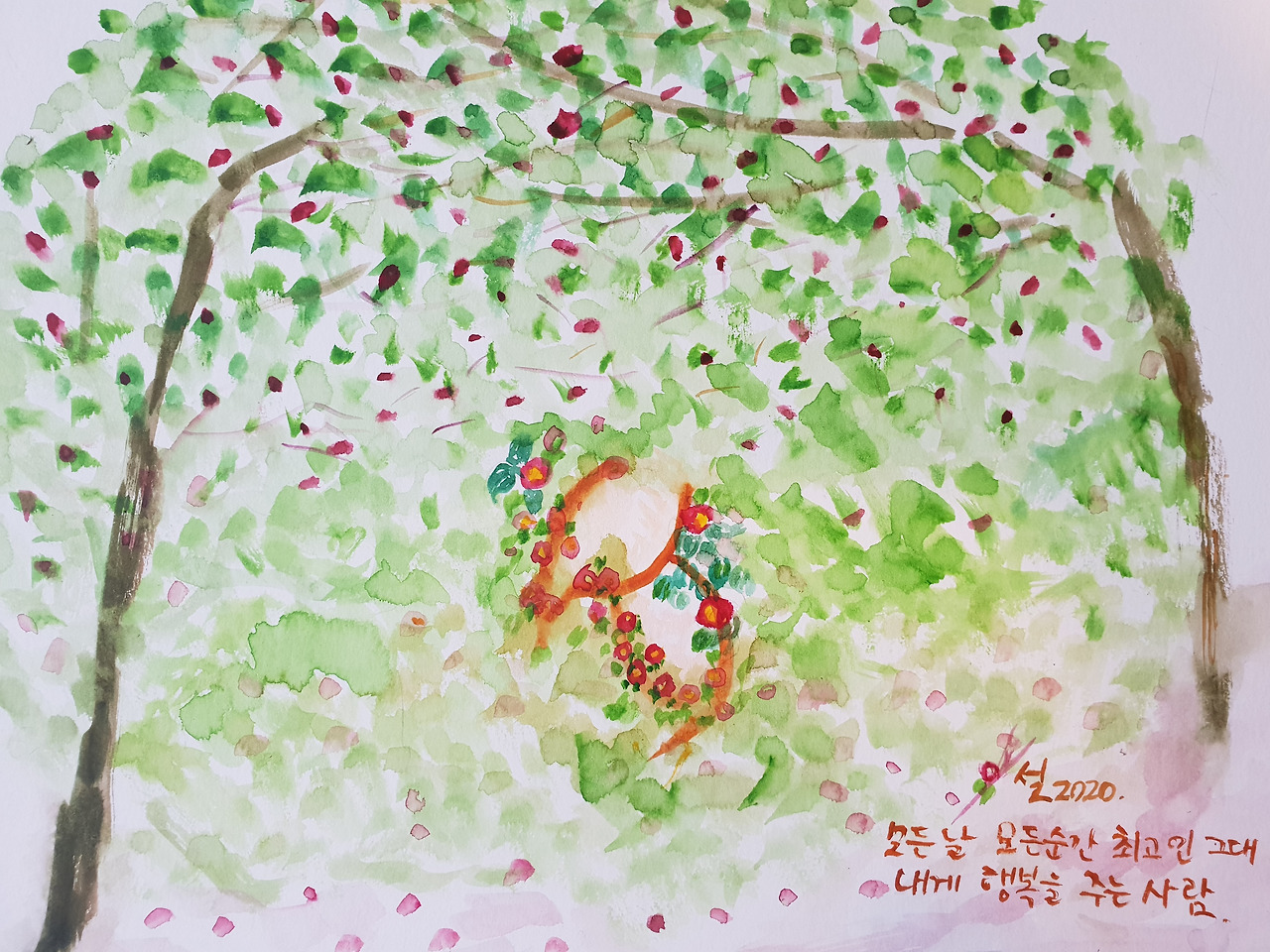 세상이 더없이 아름답게 보이는 것도 사랑이란 감정이 생길 때입니다. 모든 것이 부드럽게 보이고, 이전에 보이지 않던 것들도 새롭게 다가오니 어찌 웃음이 없을까요. 관자놀이까지 올라간 입꼬리에 훈장 같은 주름도 잇몸을 드러내며 웃습니다. 한 사람을 성장시키는 힘... 눈뜨는 아침이 환희로 다가오는 것도 사랑이지요. 그러니 어찌 사랑에 늙고 젊음이 있는가요