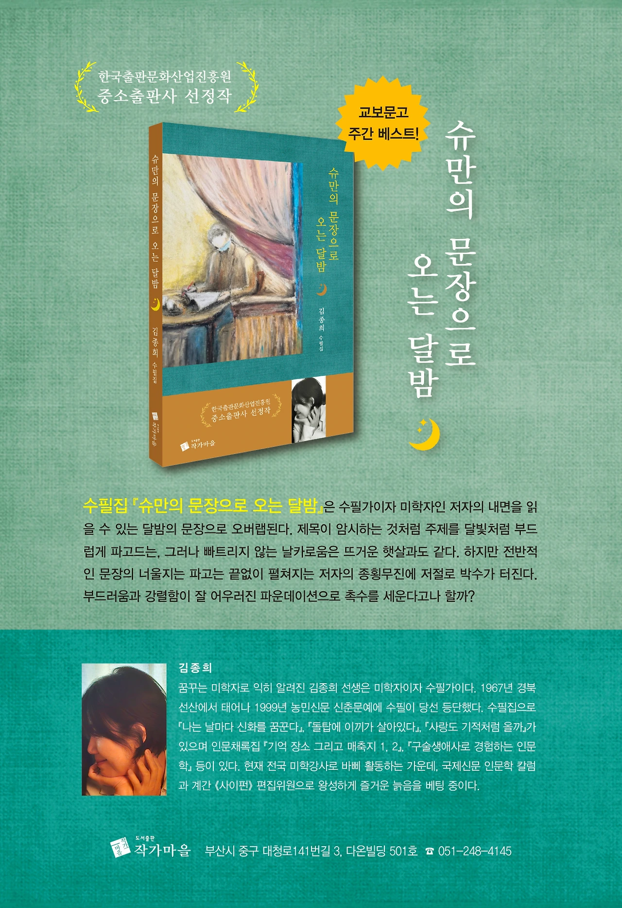 풍경의 뒷모습을 보며 가는 여행처럼, 문장의 끝말은 또 다른 풍경을 열어줍니다. 대상을 밖에 둔 생각과 내면에 질문을 던지는 사유 사이, 마르지 않는 물길로 흐르고 싶습니다. 사이란 주름입니다. 풍경과 풍경 사이, 문장과 문장 사이, 사람과 사람 사이, 생각과 사유 사이에 꿈틀거리는 주름을 접으며 우리는 날마다 성장하는가 봅니다.