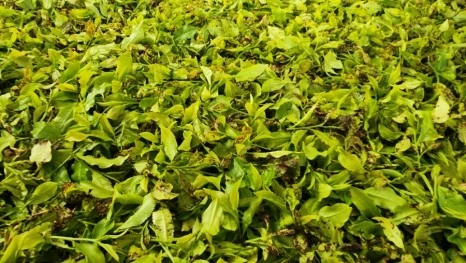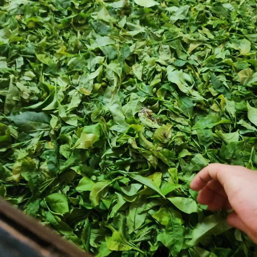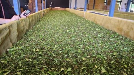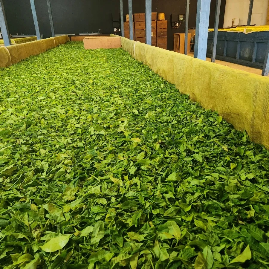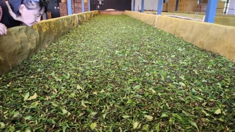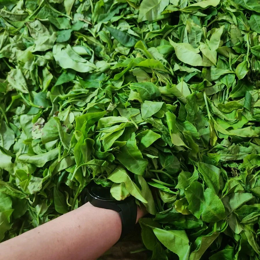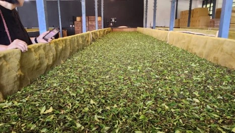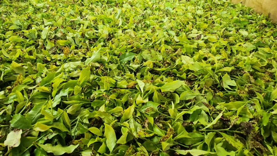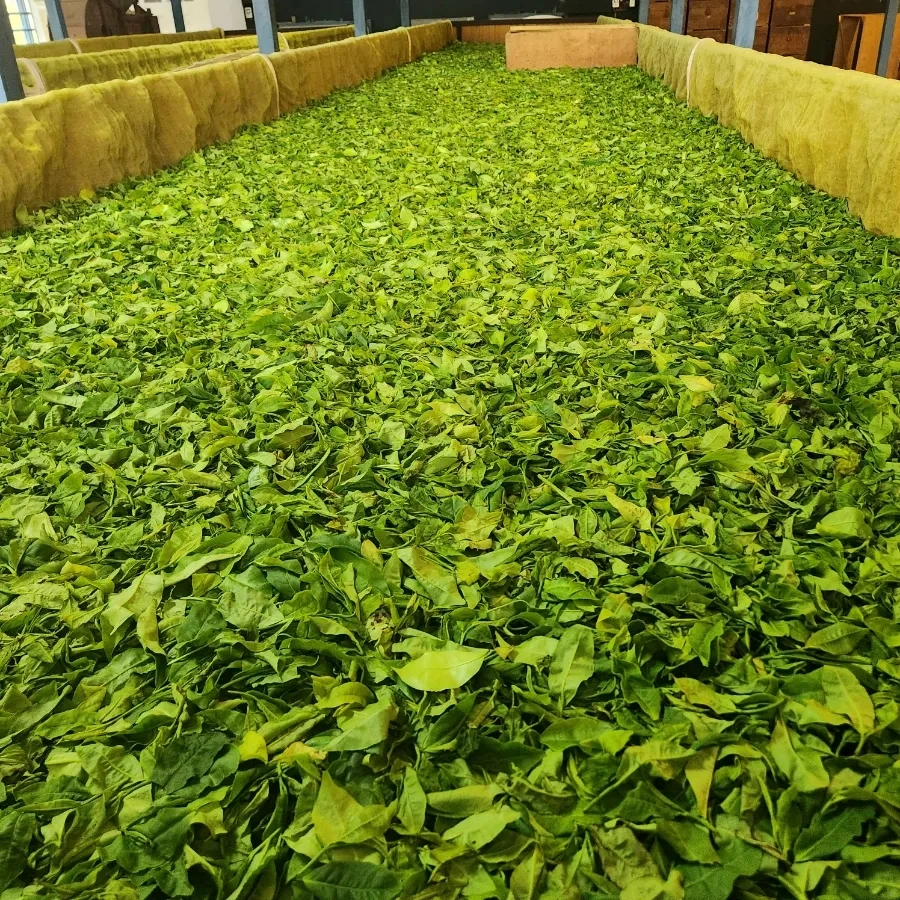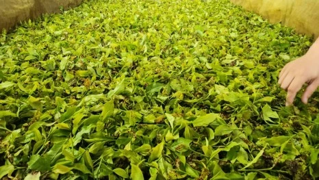 아쌈 대엽종의 찻잎입니다. 찻잎의 크기가 상당히 크죠. 위조실 가득 채운 찻잎의 향기가 매우 아름답습니다.