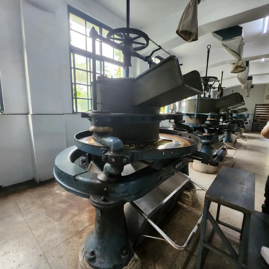 이 유념기가 바로 1872년 영국인 잭슨에 의해 발명되었다고 해서 잭슨스타일 유념기라고 합니다. 이 유념기로 말미암아 일제강점기 시절부터 일월노차창 차 공장의 영혼이라고 자랑할 만큼 자부심을 느끼고 있으며 차의 세포막을 터뜨리고 향을 만들어 내는데 용이하게 사용하면서 지금 현대까지 그들의 자부심입니다.
