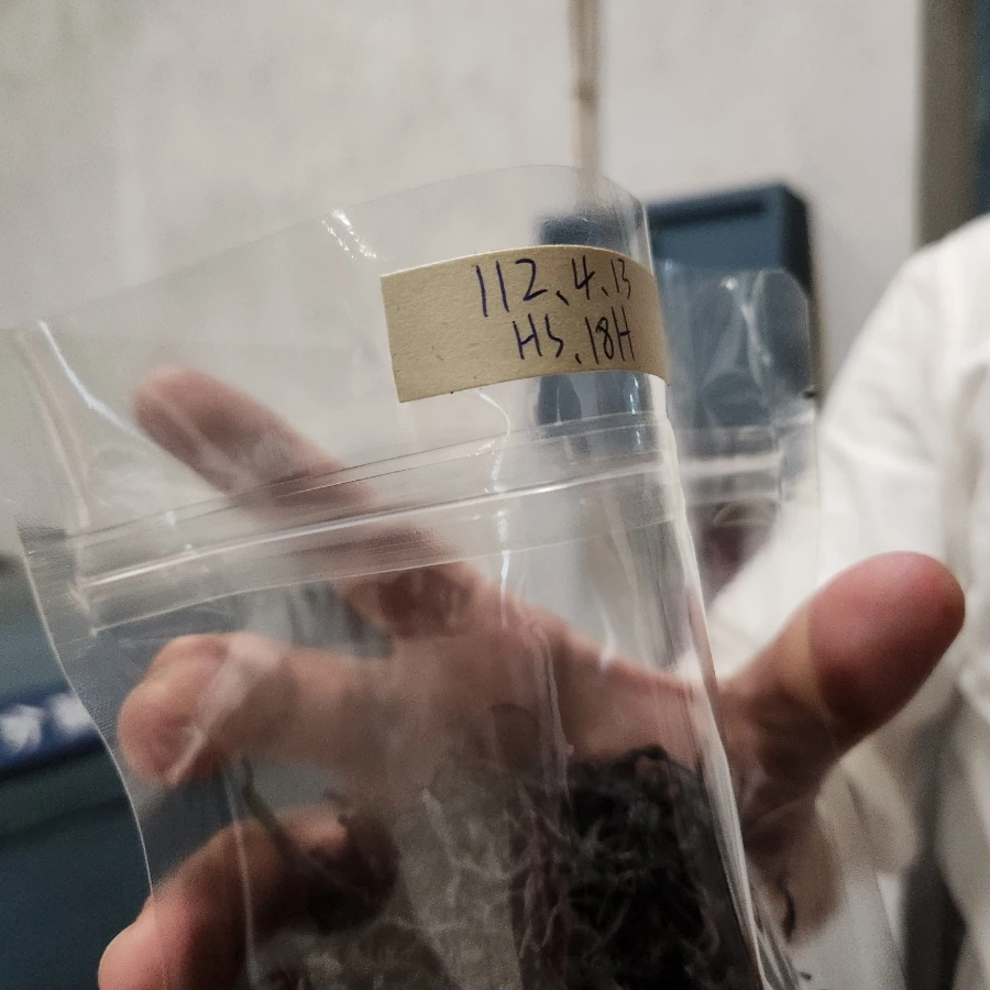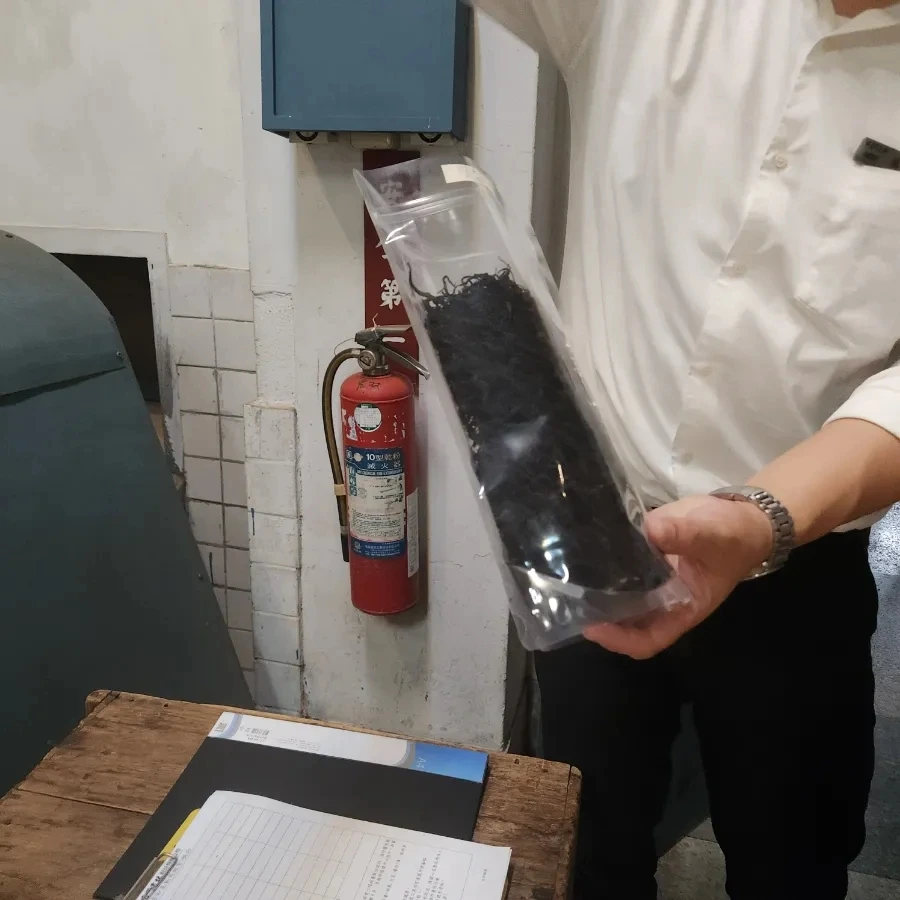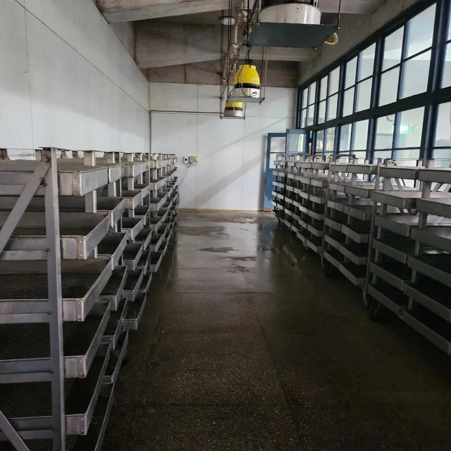 위조대 가장 끝쪽에서 모터로 바람을 일으켜 아래로 바람을 불어넣고 있습니다. 적당한 냉풍과 온풍을 교차하면서 위조 중인데 속열이 궁금해서 만져 봐도 되냐고 물어보고 손을 깊이 넣어 봅니다.