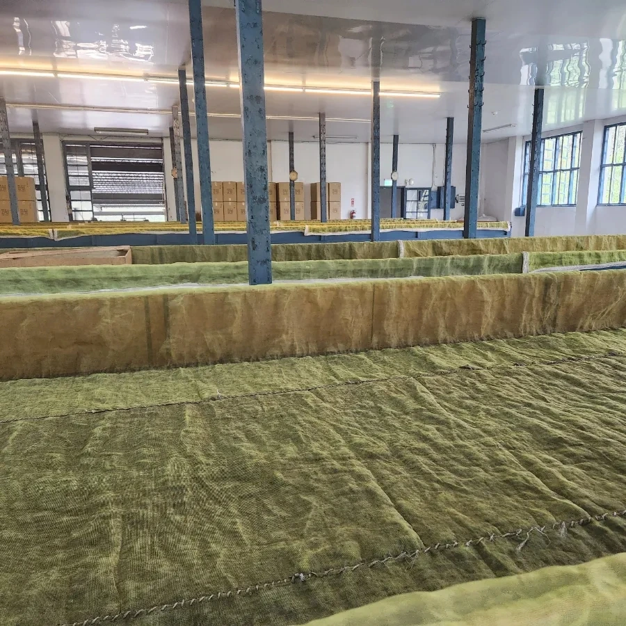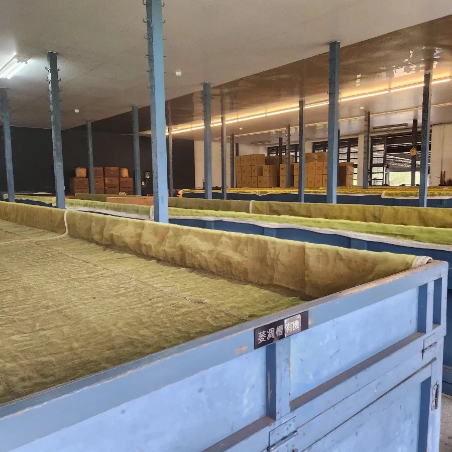 찻잎을 펼쳐 시들리는 과정을 위조라고 하지요. 사진은 위조대라고 하며 찻잎을 펼쳐 시들리는 곳인데 시간대 별로 냉풍과 온풍을 불어넣으며 찻잎의 수분감과 산화를 조절합니다.