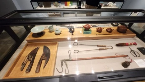 매장과 벽 하나를 사이에 두고 전시관이 있습니다. 이곳에서는 유산차방의 차의 본질을 만날 수 있습니다. 그들이 만들고 있는 차의 품종과 차 종류는 물론이거니와 유물관에서는 실제 그들이 사용하고 있는 제다에 필요한 기구들이 전시되어 있는데 사실 유념 기나 주청기 건조기 홍배기 채엽기등은 이미 여러 곳에서 보았거니와 이제는 새삼스럽다기보다는 그들의 관리 상태를 좀 더 깊이 들어다 보는 것 같습니다.