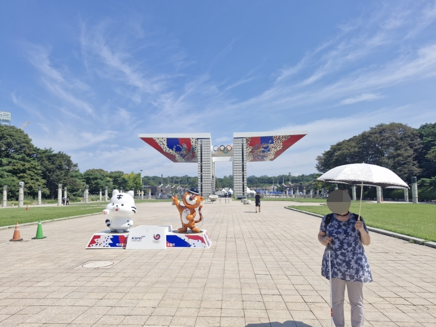 할아버지, 아버지, 초등학생 손녀 3대 팀이 눈에 쏙 들어왔다. 시각장애인 할아버지를 양옆에서 챙기는 가족팀은 참으로 돋보였다.