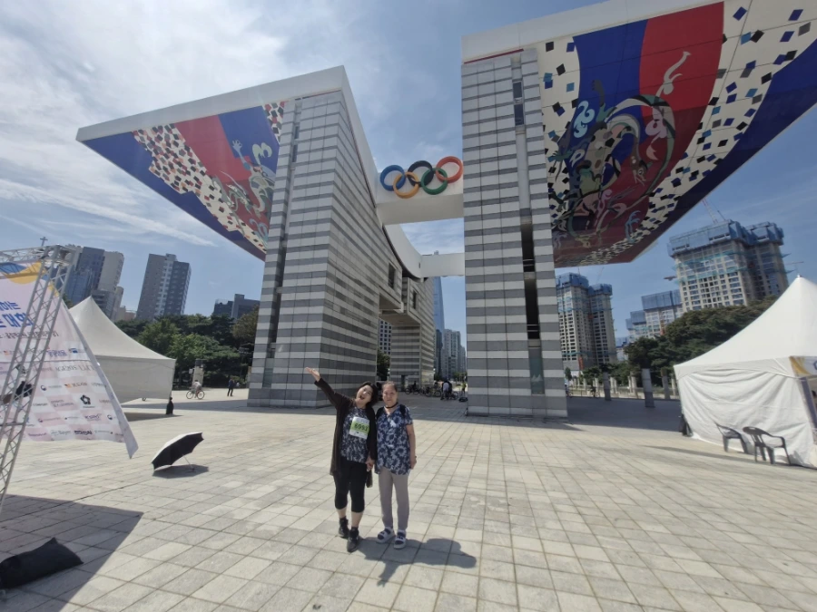 카타리나 선생님과 5킬로를 완주하고 평화의 광장에 돌아왔다. 포토존에서 이쁜 척, 멋진 척 해피해피, 그리하여 즐겁게 살아지리라!