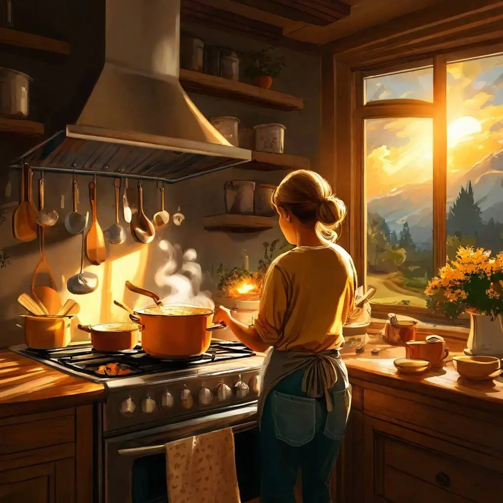 "아냐. 레시피에 5분 끓이라고 되어 있는데 지금 30초 남았어."