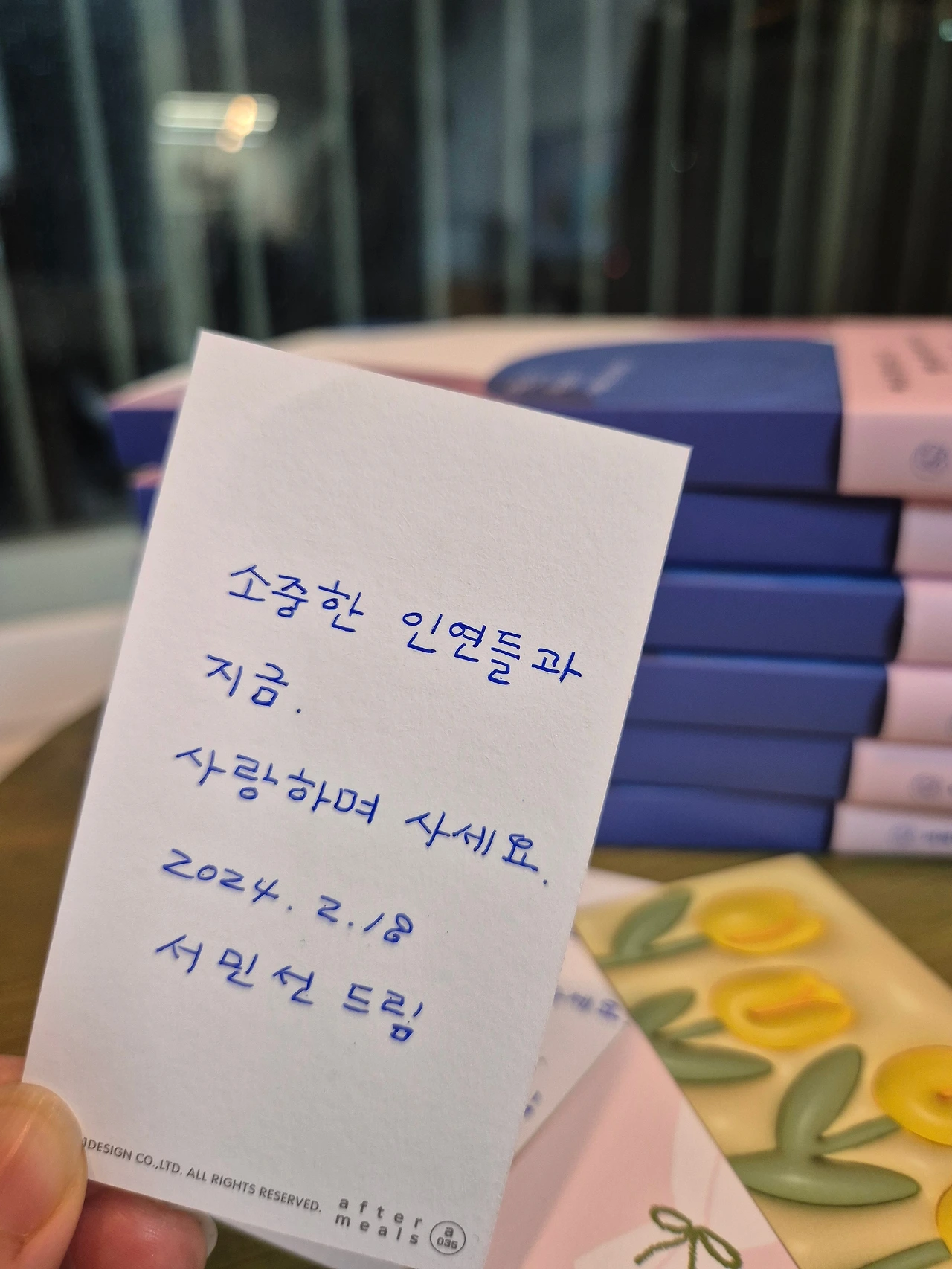 우선, 저자 서명을 어떻게 할지 생각해 뒀어야 하더라고요. 점조직 같은 제 지인들이, 제 가족의 지인들이, 그 지인의 지인들이 인터넷 서점에서 산 책을 들고 나타나기 시작했거든요. 제가 연예인도 아닌데, 멋들어지게 '서민선' 이름 석자 쓴다고 될 일도 아니고. 제가 책을 쓰고 싶어 했던 그 옛날부터 절 지켜봐 주고 돌봐 준 제 명예 편집자께서는, 해당 책에 어울리는 문구를 만들어야 한다고 미리 조언도 해 주셨어요.