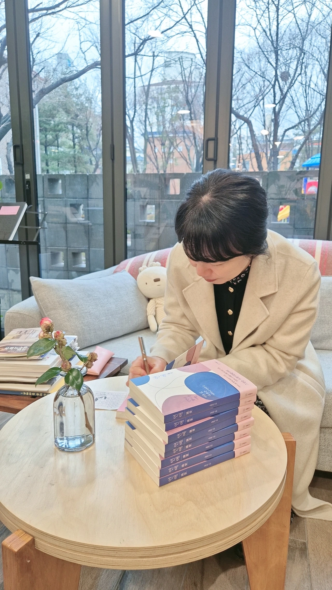 그리고 두둥. 제가 즐겨 가는 동네 책방 #뜻밖의 여행에서 제 책을 대량 입고해 주셨어요. 그래서 달려가서 저자 서명 10권 하고, 하면서 제 첫 일반인 독자(^^) 분을 만나서 사진도 찍고 사인도 하고 이런저런 이야기도 나누고. 얼마나 좋았는지 몰라요. 물론, 동네 책방 찬스지만요.