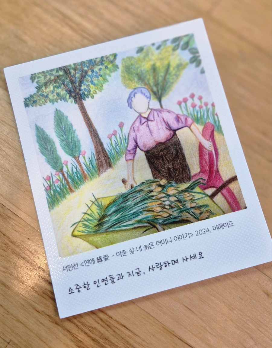 제게는 너무 의미 있는, 바로 이곳 <뜻밖의 여행>에서, 제 두 번째 북토크를 하려고 해요. 첫 번째 북토크와는 분위기가 매우 많이 다를 것 같아요. 이곳은 <뜻밖의 여행>을 중심으로 책을 좋아하는 사람들이 모이는 작은 문화 공동체 느낌이고요, 일반 독자님들도 많이 참석하실 것 같아요. 그래서 두 번째인데도 많이 떨립니다. 하지만, 잘 준비해 보려고요. 그래서 굿즈도 만들어 봤어요. 책 본문에 나오는 어머니 그림을 넣은, 폴라로이드 사진이에요. 정말 사부작사부작, 에너지 넘치는 신인 작가입니다 :)