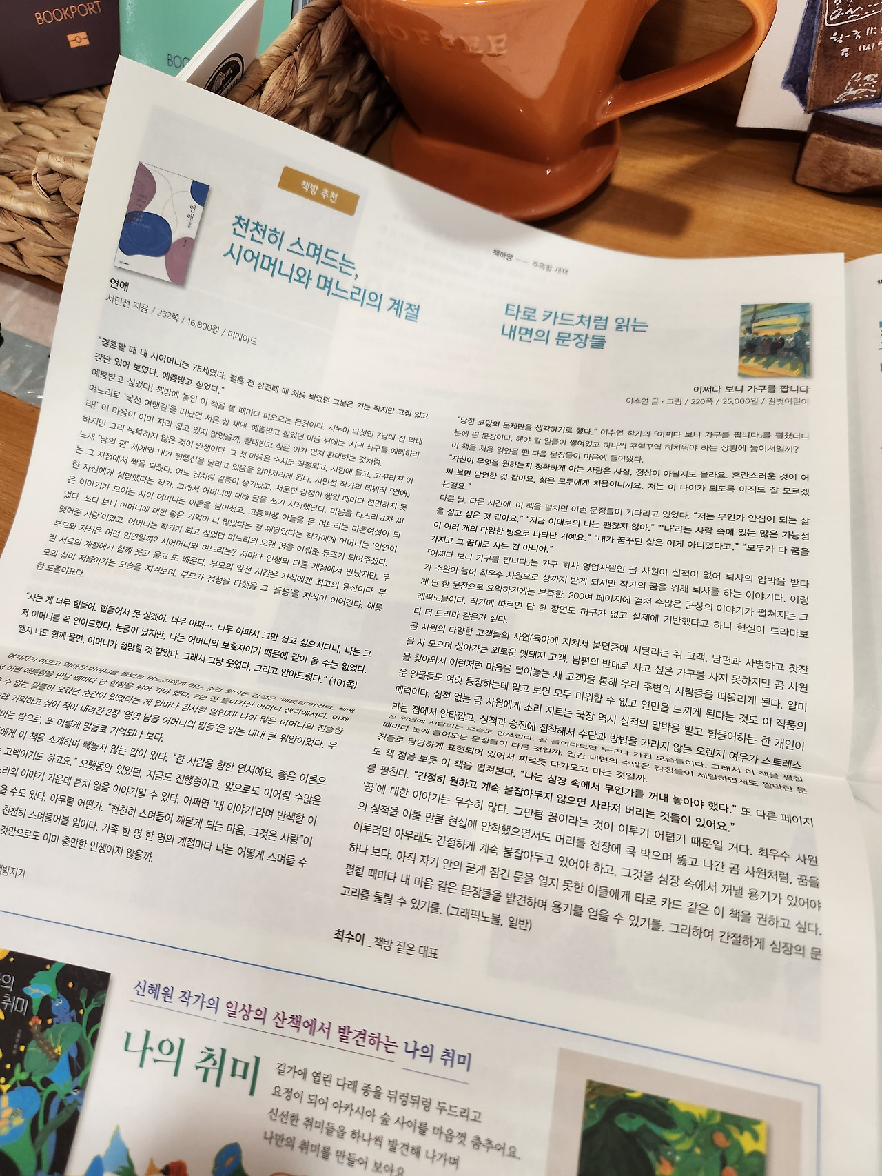 집에서 책방이 10분 거리여서, 이번에는 제 아이 도현이도 참석하기로 했어요. 아이가 보고 있을 거라고 생각하니 두 배, 아니 세 배 이상 더 떨리지만, 아이에게 특별하고 좋은 경험이 될 것 같아서 용기를 냈어요. 어떤 이야기가 오고 갈지, 어떤 분들이 참석해 주실지, 어떤 시간이 될지, 두근두근 거립니다. 사실 요즈음 집안에 많은 일들이 있어서, 3일 같은 하루하루를 보내고 있는데요(제 책 속 주인공이신 어머니께서도 평소보다 컨디션이 안 좋으신 상태이고요). 하지만 이렇게 가슴 뛰는 일이 제게 끊임없이 일어난다는 것에, 위안을 삼고 용기와 힘을 내려고 합니다.