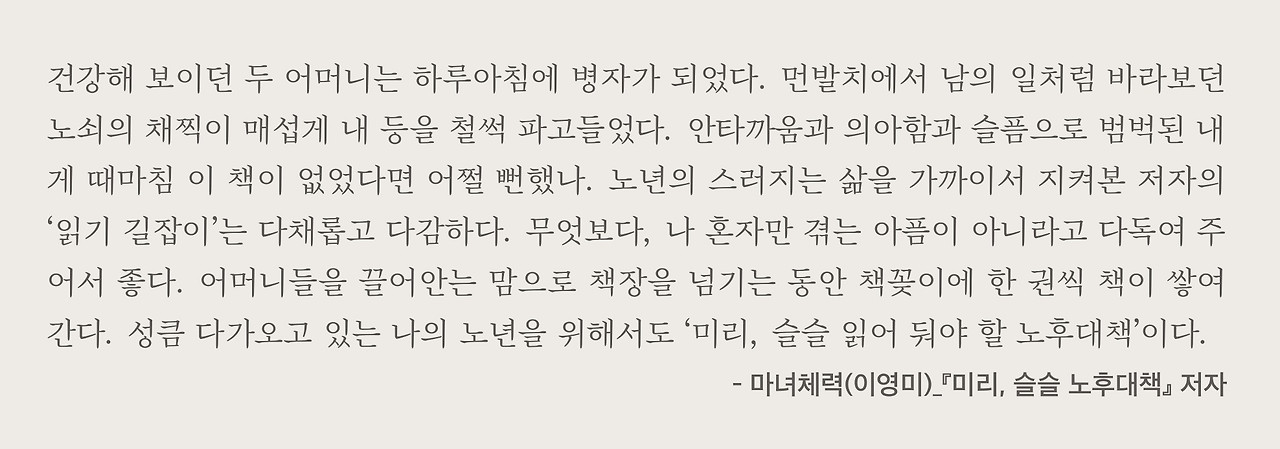 드디어 두 번째 책 <노년을 읽습니다>가 나왔어요.