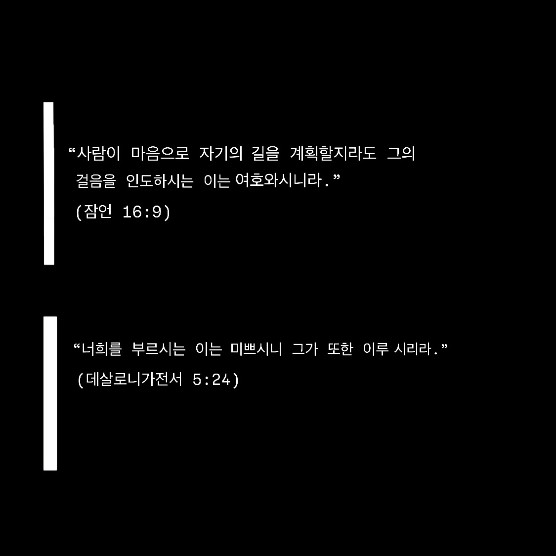 “사람이 마음으로 자기의 길을 계획할지라도 그의 걸음을 인도하시는 이는 여호와 시니라.”
