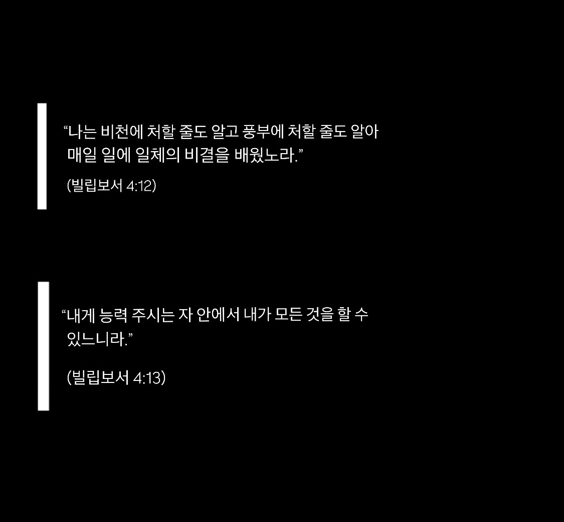“나는 비천에 처할 줄도 알고 풍부에 처할 줄도 알아 매일 일에 일체의 비결을 배웠노라.”