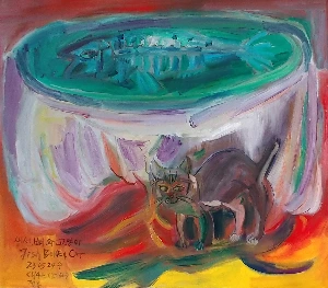 <Fish Bone and Cat (생선뼈와 고양이), Oil on Canvas, 61.81 x 70.42 cm, 2023>