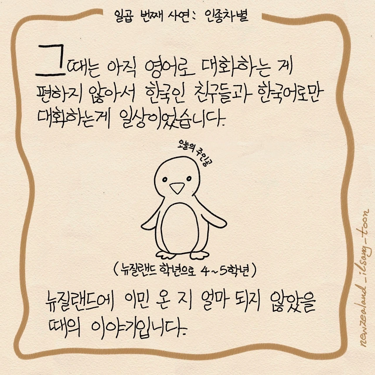 2000년대 초, 뉴질랜드 초등학생의 이야기를 만화로 그리고 있습니다. 뉴질랜드 3년 거주, 18개국 해외여행러, 미국 1년 거주. 늘 새로운 문화를 경험하고 싶은 예비작가.