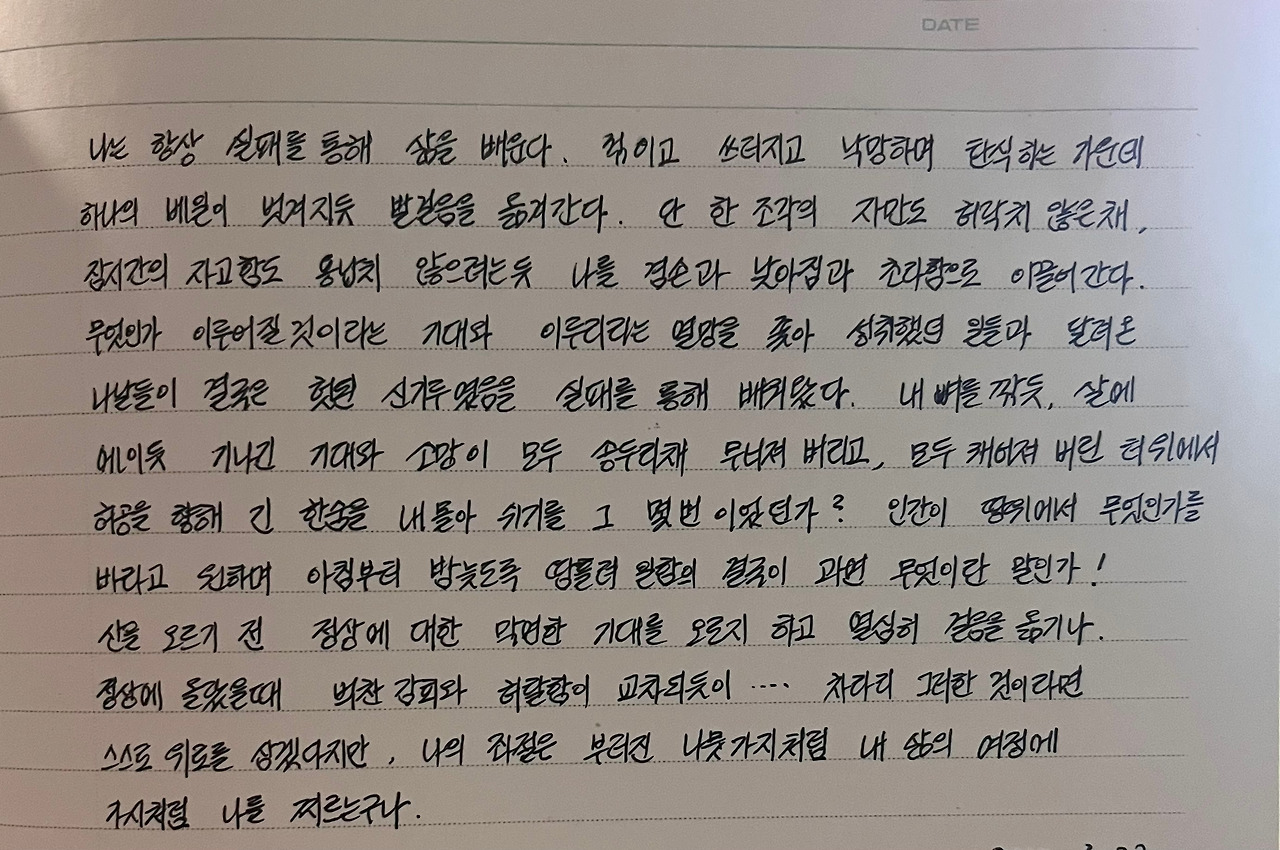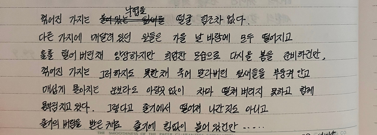 아버지가 돌아가시고, 차마 보지 못했던 아버지의 일기를 몇 년이 지나서 펼쳐보았다. 차마 가족들에게 다 하지 못한 말이 적혀있는 아버지의 일기에는, 우리에게 다 나을 거야 건강해질 거야라고 했던 그 말과는 다르게 삶을 정리하고 계셨다는 걸 알 수 있었다.