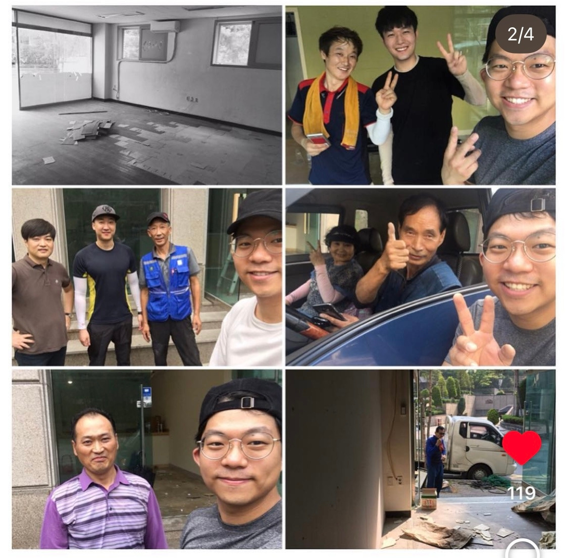 두 차례의 큰 허리수술을 해서 늘 허리를 조심하며 살아야 했던 그에게 요령 없는 첫 공사는 병원 가기 딱 좋은 순간이었다. 안 되겠다 싶어 급하게 철거하시는 분을 불렀다. 그리고... 그가 3시간 넘게 끙끙거리며 1/8를 뜯었던 것을 그분은 장비를 사용해서 천장과 모든 데코타일, 바닥 샌딩까지 거의 1시간 만에 끝내버렸다.